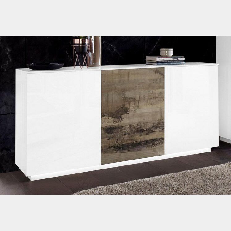 Madia 3 ante di design in finitura bianco lucido e pero, realizzati in materiale di legno certificato FSC®.
