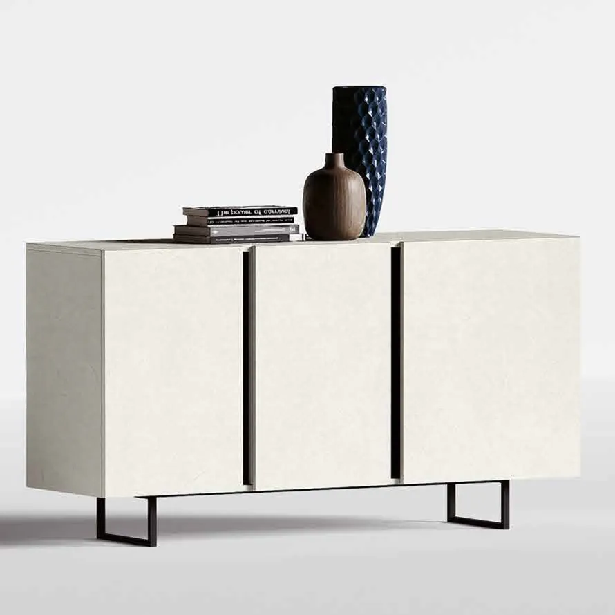 Madia 3 ante Bianco spatolato, con piedini neri