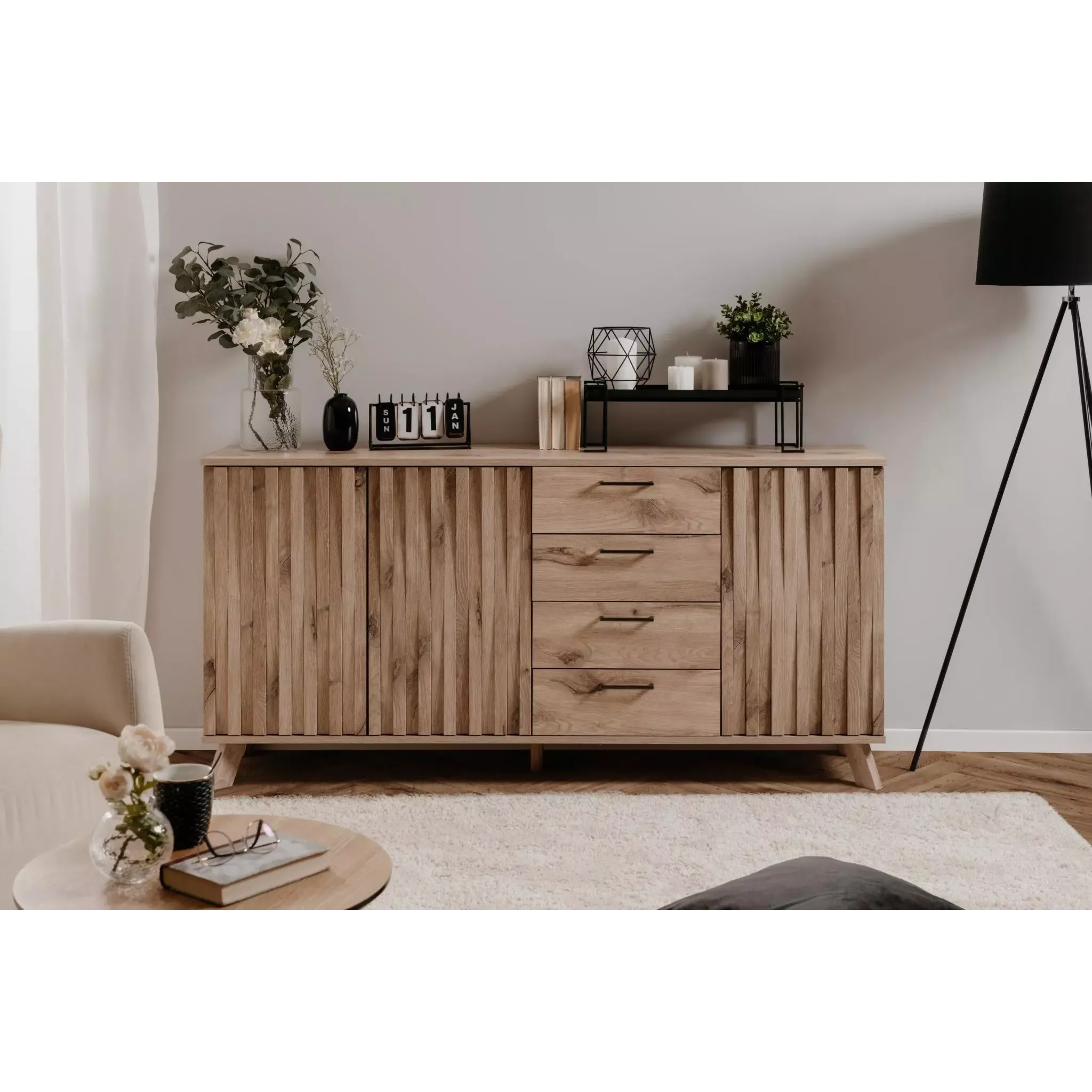 Credenza 3 ante e 4 cassetti, finitura Quercia del Nord