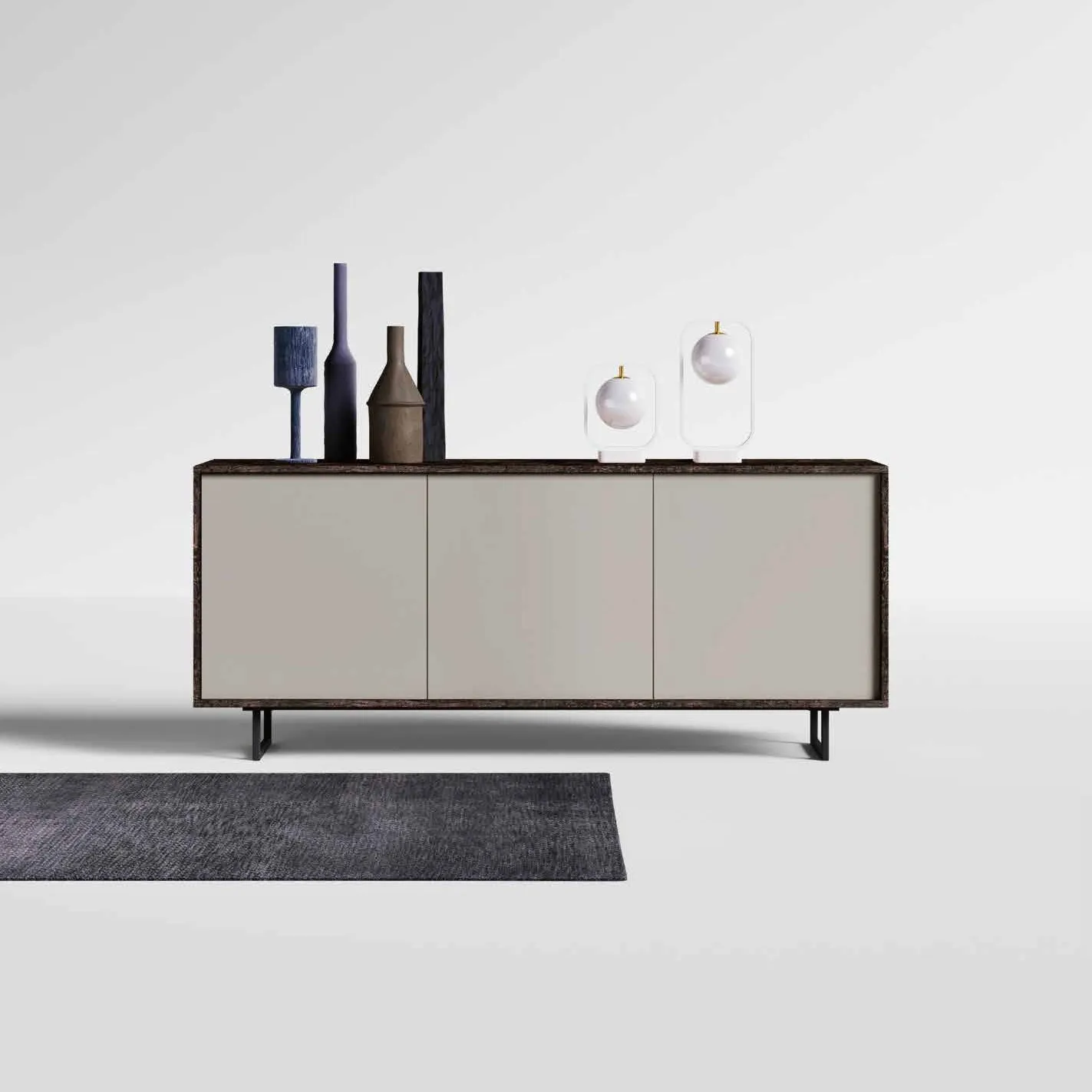 Madia 3 ante Grigio seta e Legno bruciato, piedini in ferro
