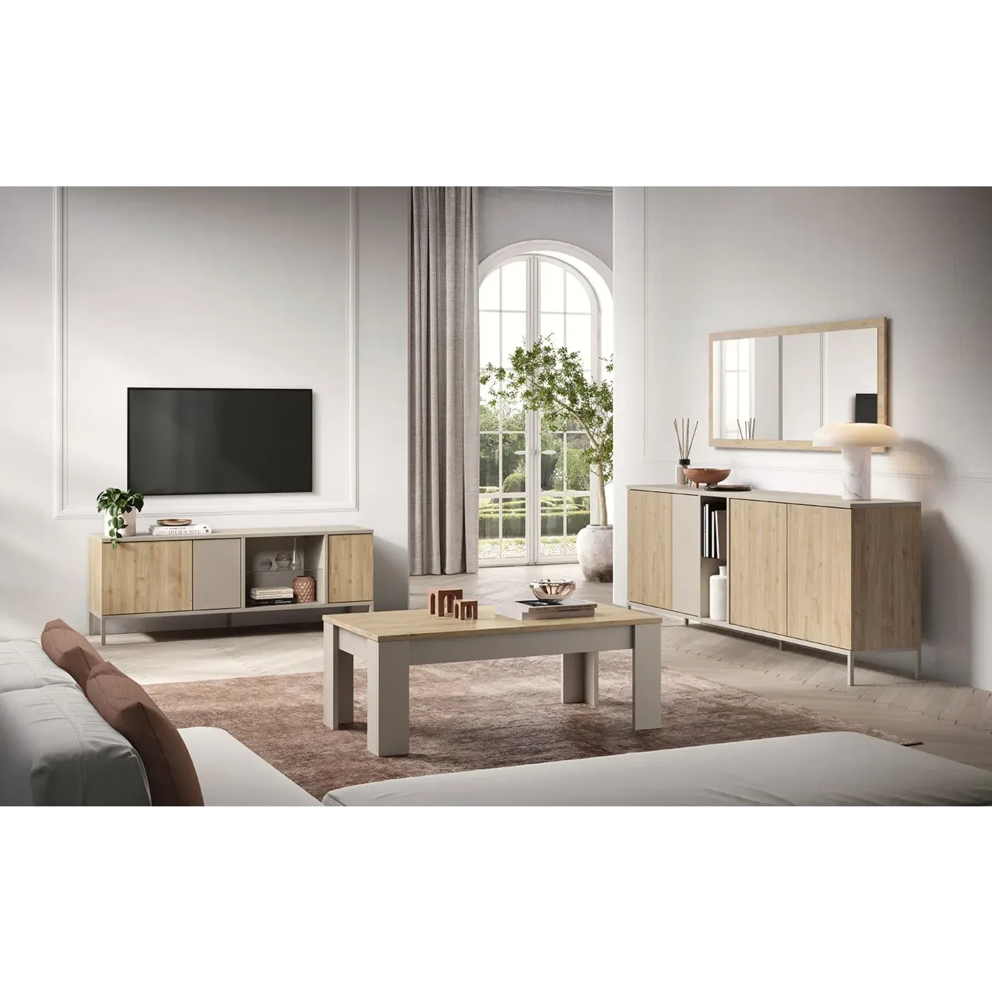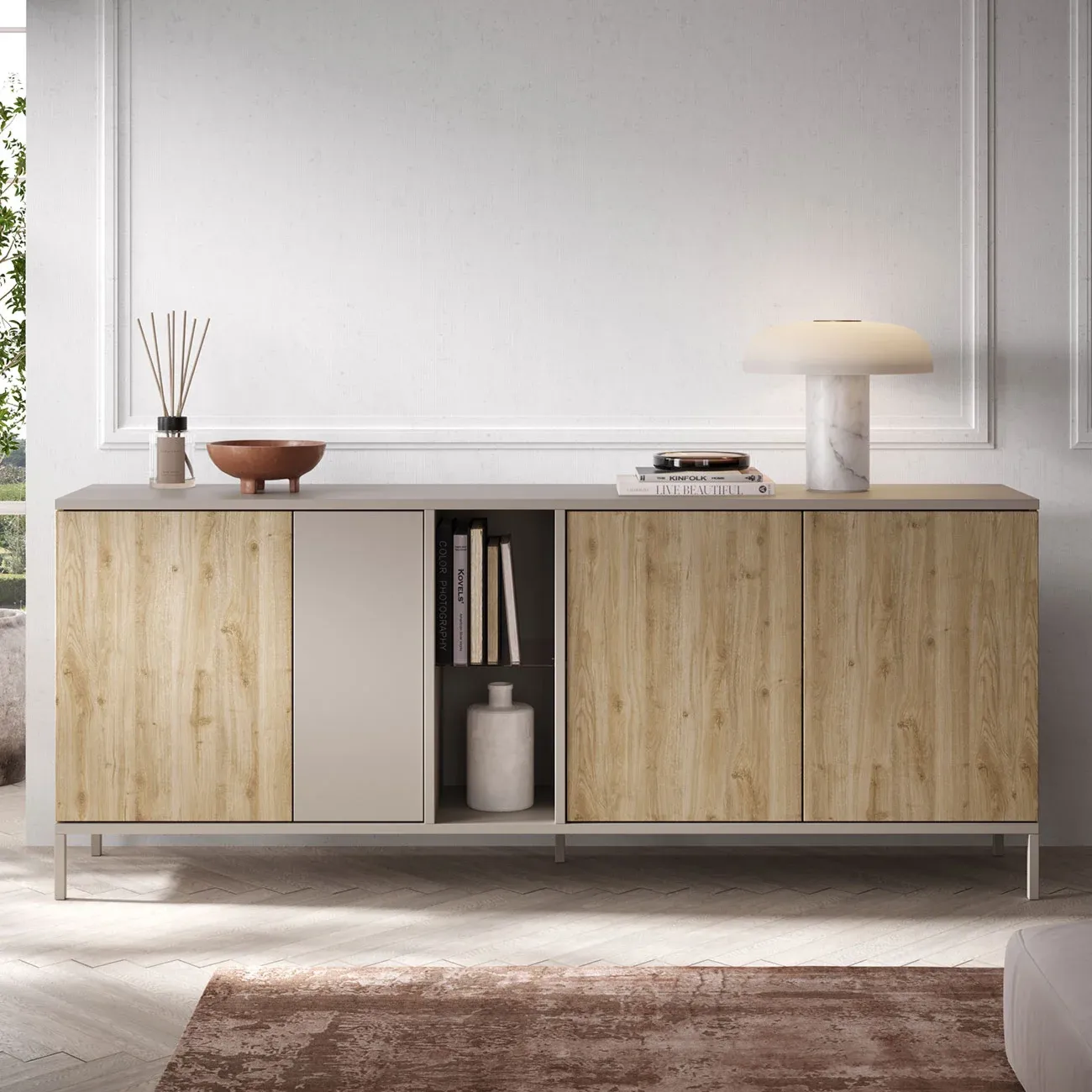 Madia 4 ante Cashmere e Cadiz, con ripiano in vetro