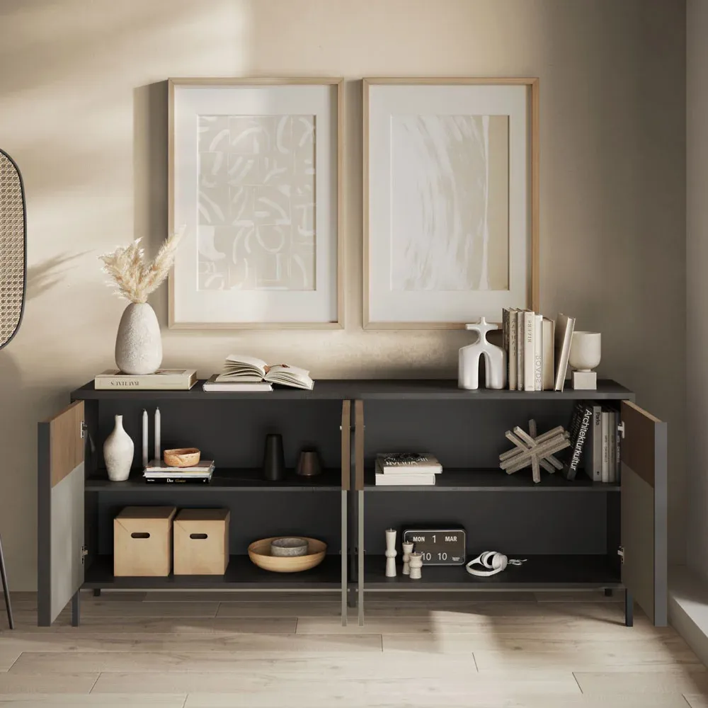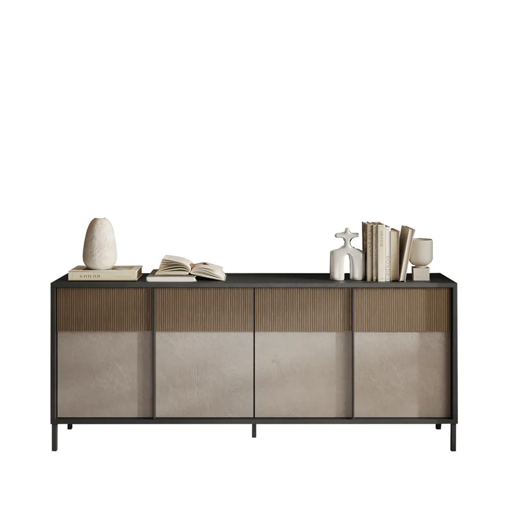 Madia con 4 ante in finitura Lava/Argilla/Mercure 100% Made in Italy. Questa credenza si distingue per la sua qualità e anche per la sua forte personalità.