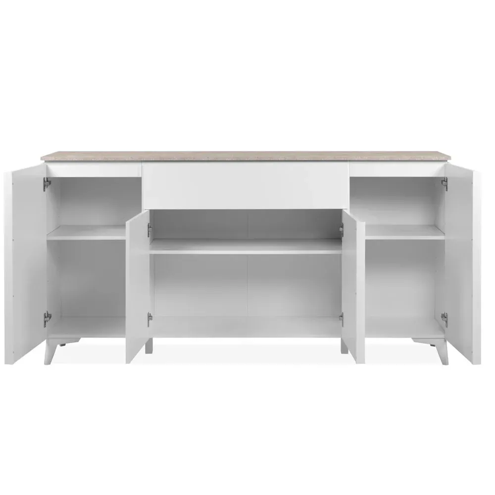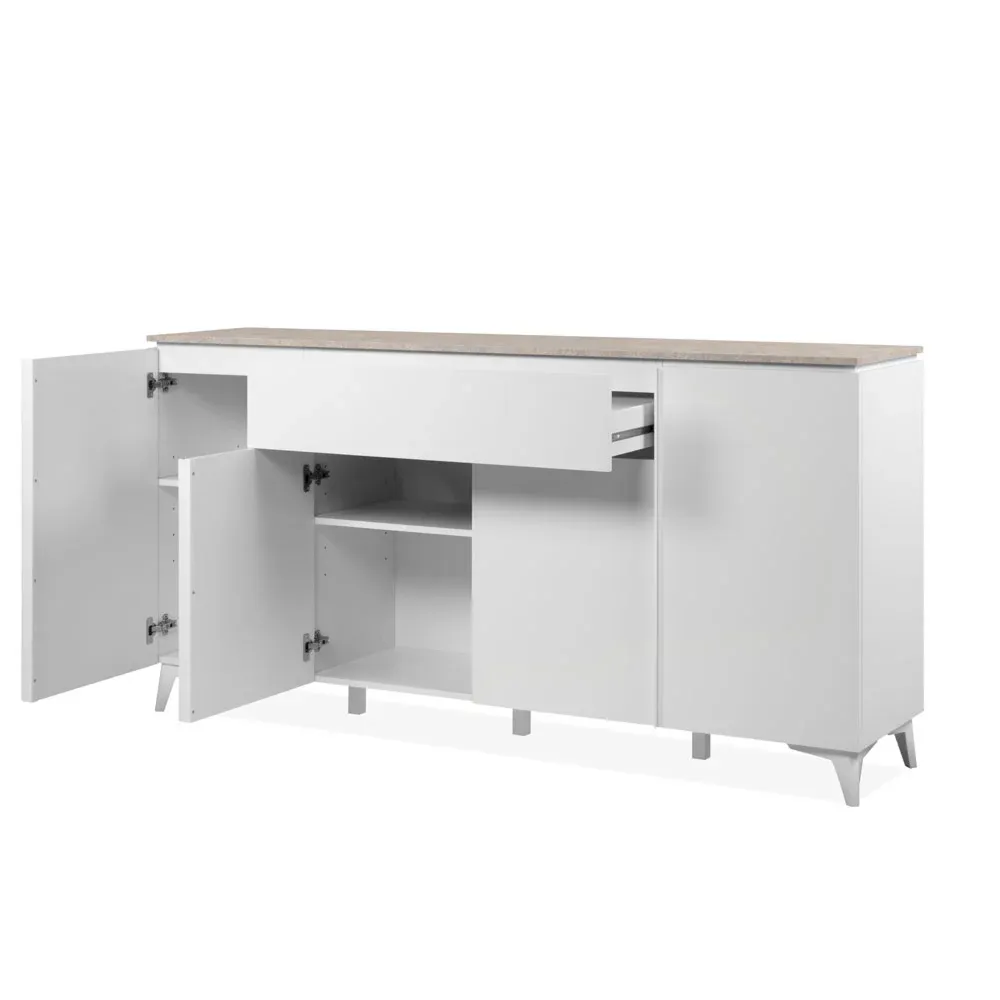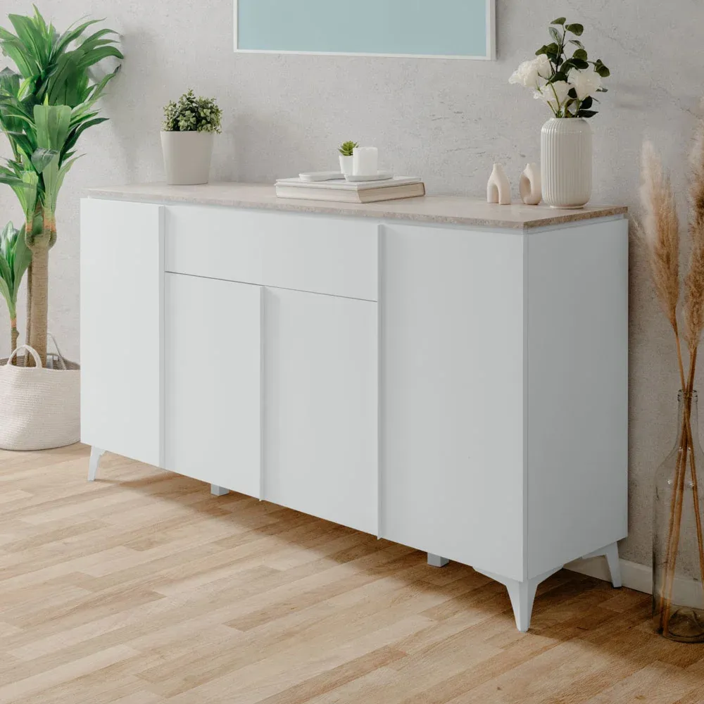 Se non sapete dove inserire i vostri oggetti personali, ecco a voi una bellissima madia Bianca e Calcestruzzo costituita da un cassetto e da tre ante battenti che garantiscono un facile accesso.
