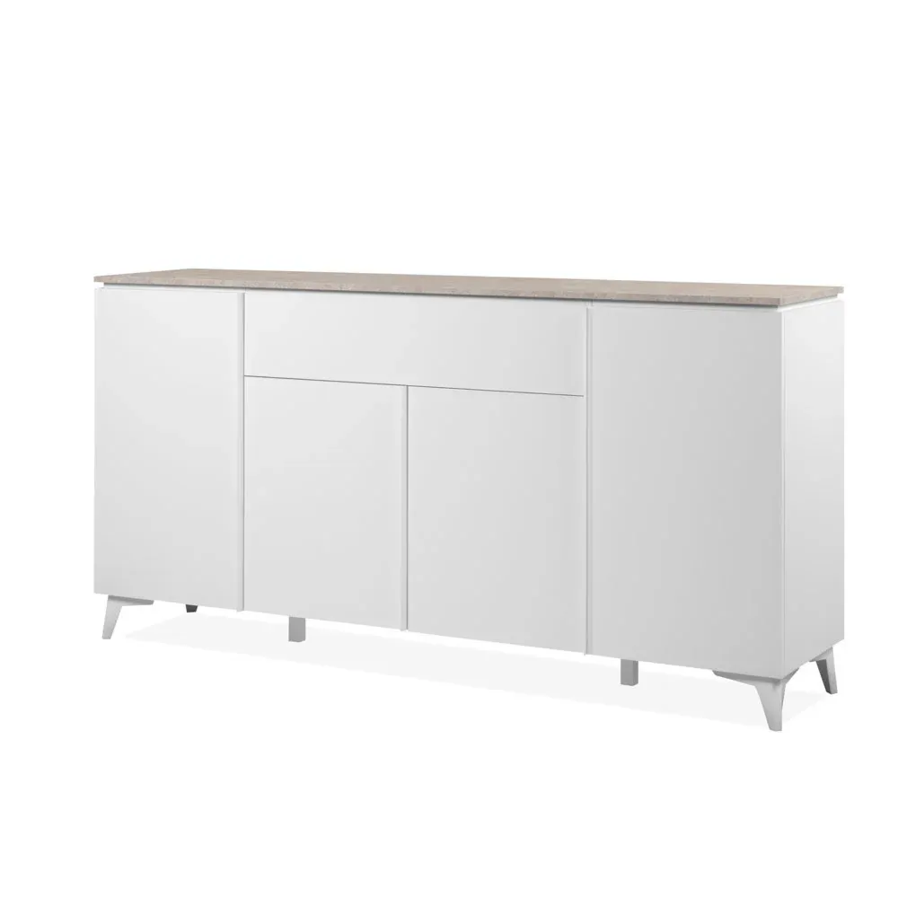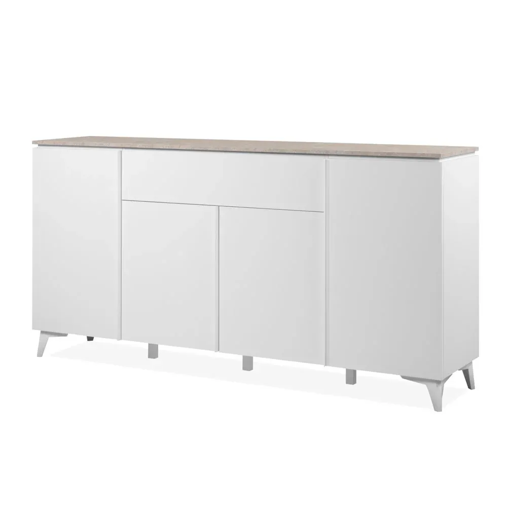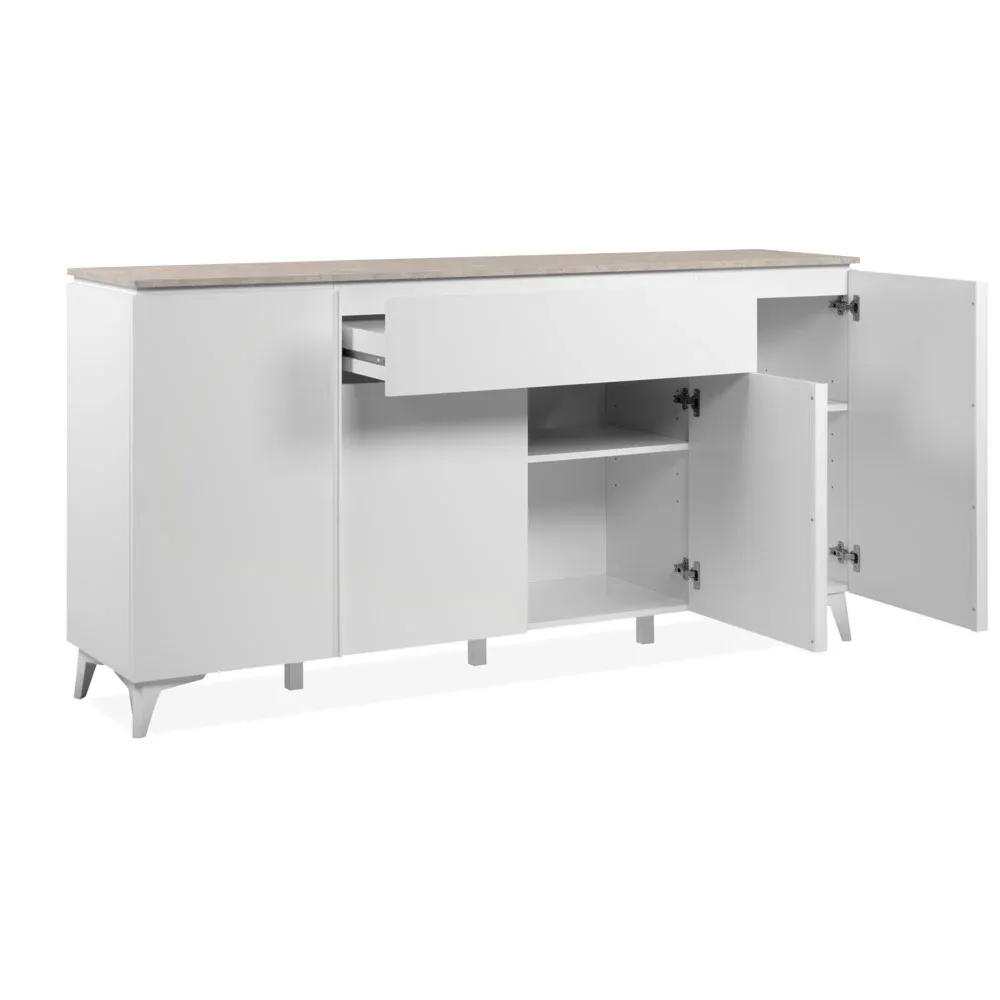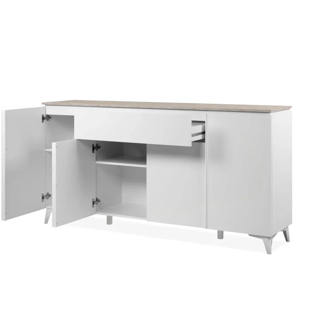Se non sapete dove inserire i vostri oggetti personali, ecco a voi una bellissima madia Bianca e Calcestruzzo costituita da un cassetto e da tre ante battenti che garantiscono un facile accesso.