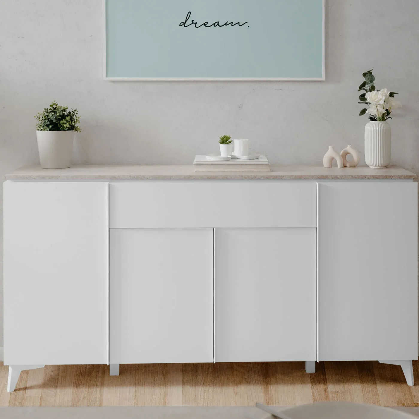 Nuovissima madia con 4 ante e un cassetto in finitura Bianco e Calcestruzzo