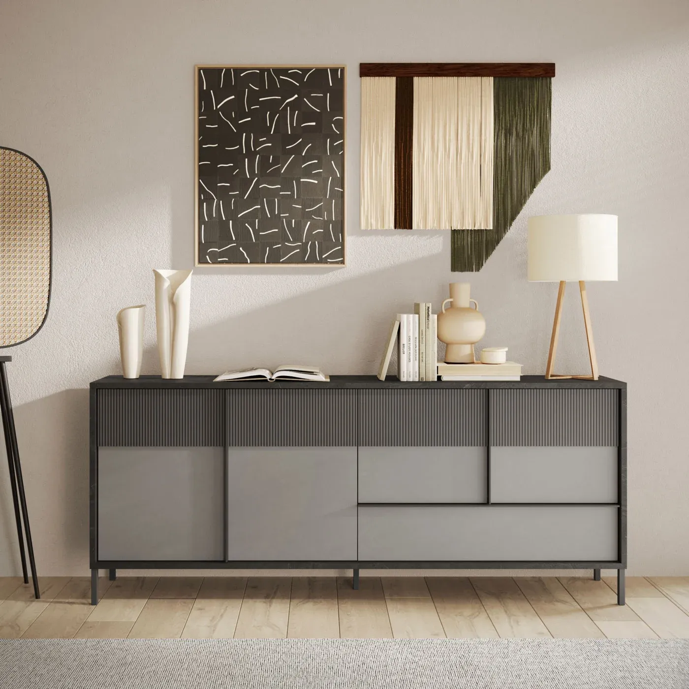 Elegante madia composta da 4 ante e un cassetto colore Piombo/Gesso/Ardesia. E' disponibile anche nella versione Lava/Argilla/Mercure.