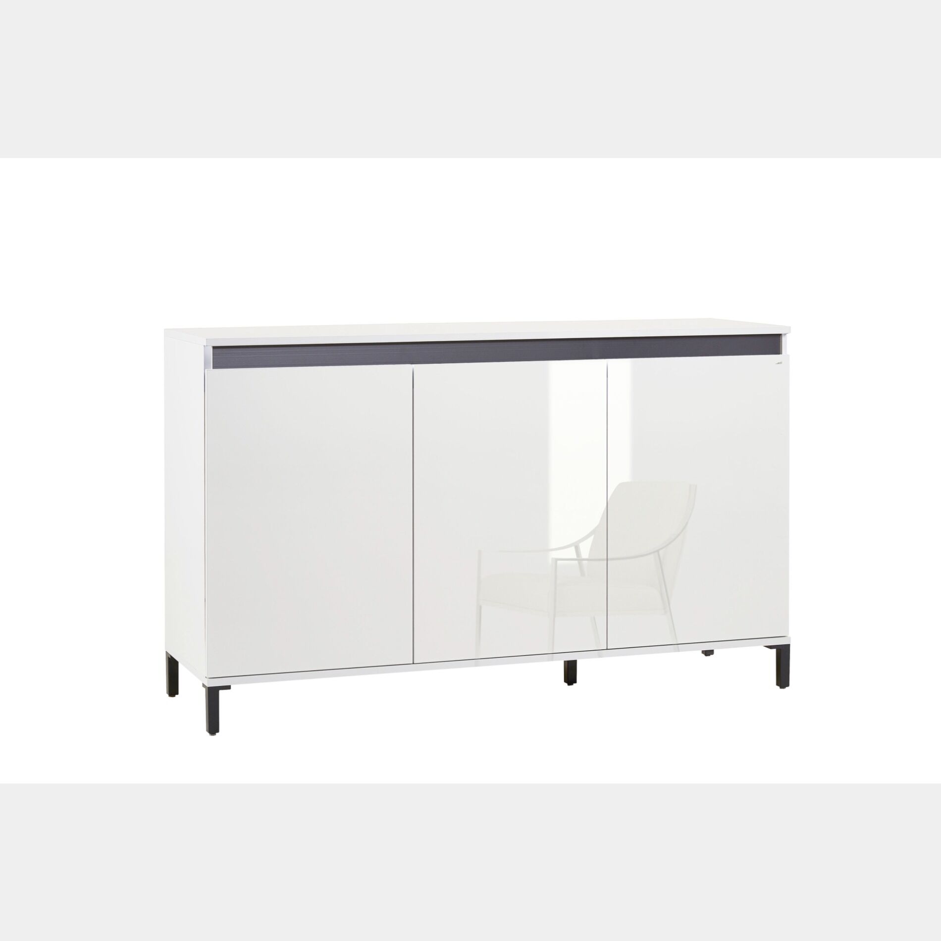 Madia a 3 ante, colore Bianco lucido e Ardesia