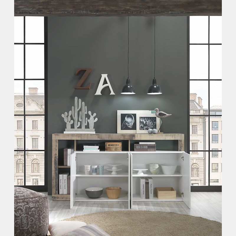 Madia di design a 4 ante made in Italy. Questa madia, grazie al suo design particolare ma al contempo semplice, crea un gioco di forme e colori rendendo il tuo living unico. La madia fa parte della collezione Treck, dove è possibile trovare anche altre madie e porta tv.