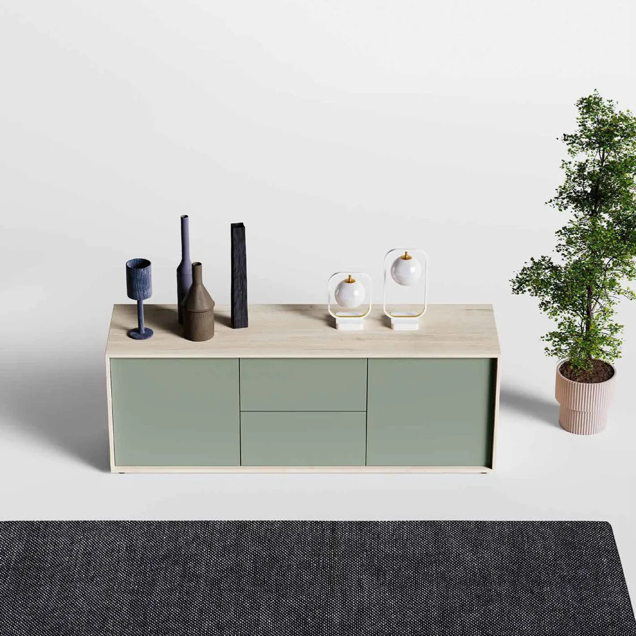 Madia a terra, Agave e Rovere sbiancato, 2 ante e 2 cassetti