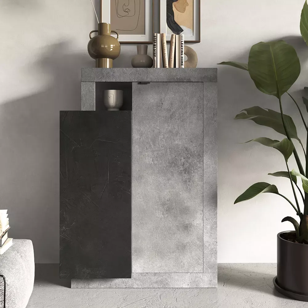 Madia alta 2 ante, design moderno, finitura Cemento e Piombo