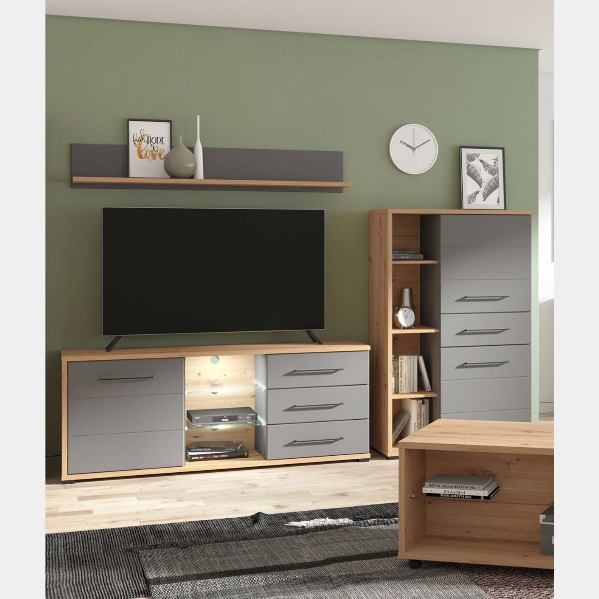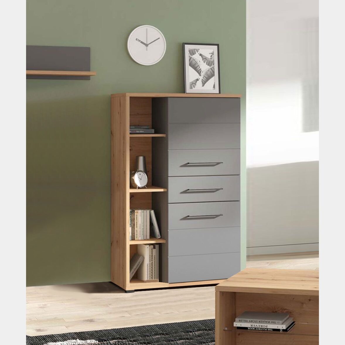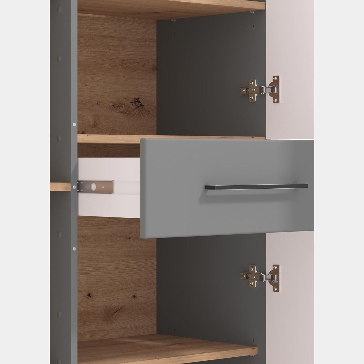 Madia alta 2 ante 1 cassetto, finitura Rovere e Grafite