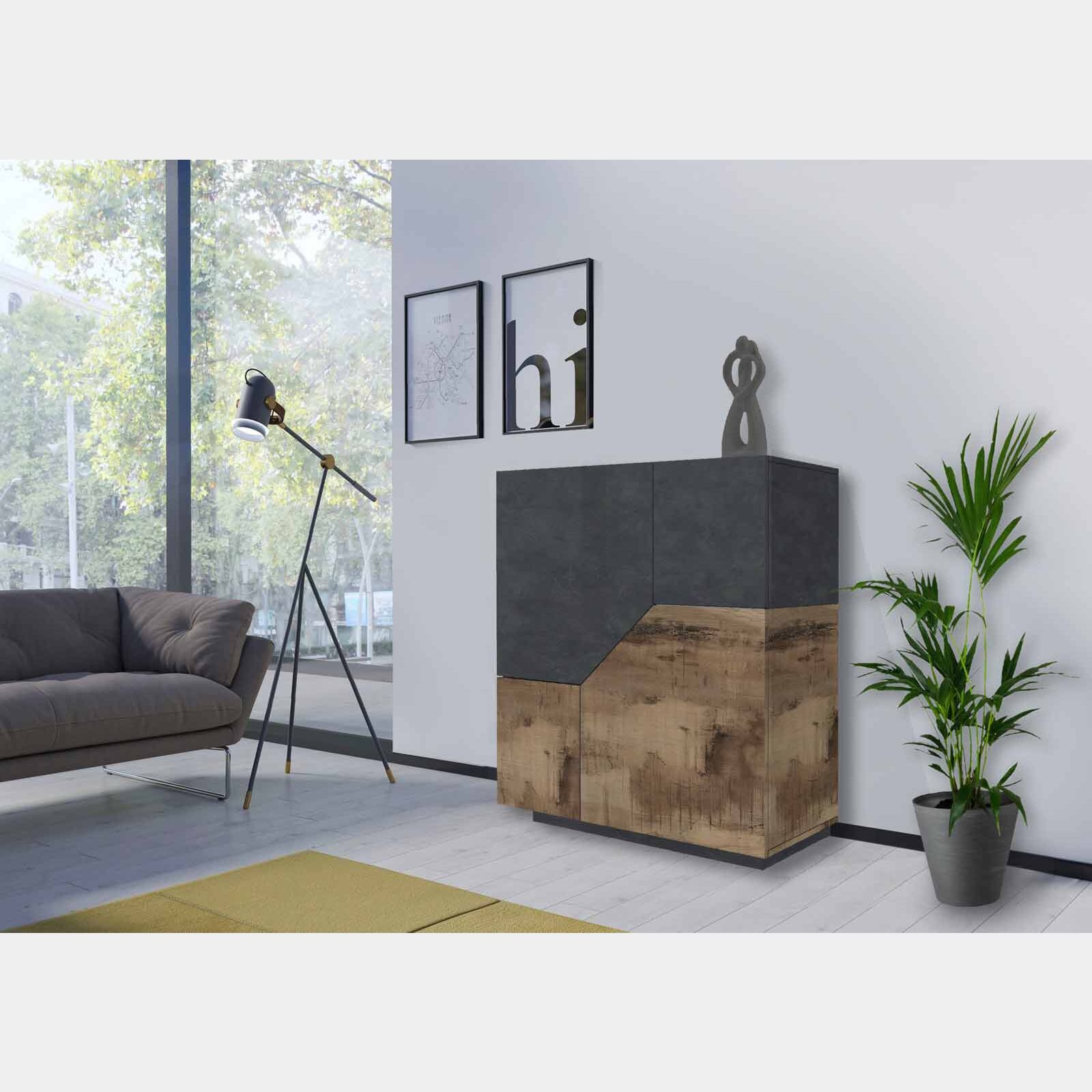 Credenza moderna alta a 2 ante finitura Ardesia e Pero.