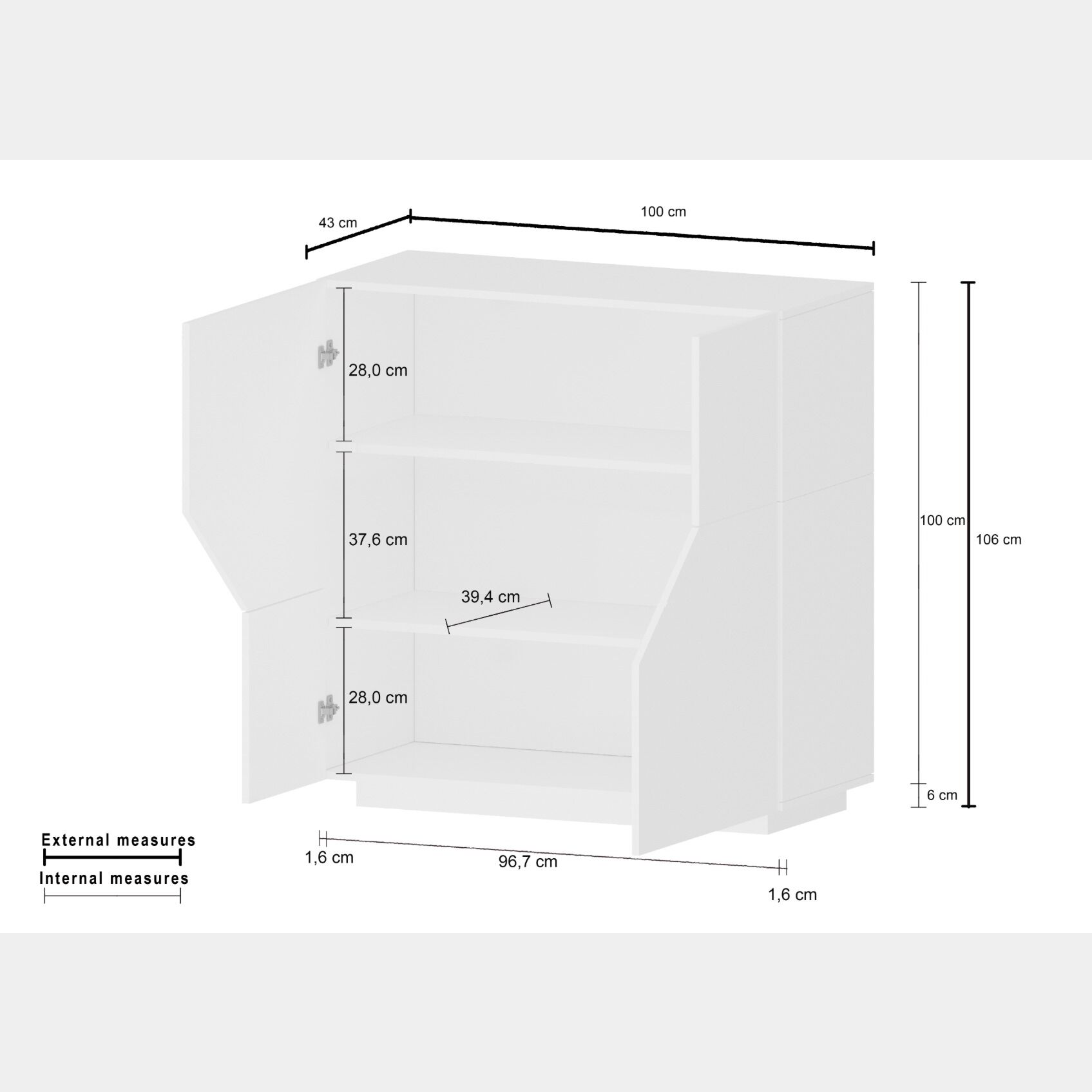 Può assolvere sia alla funzione di base TV sia di madia ed è dotato di due ripiani interni.