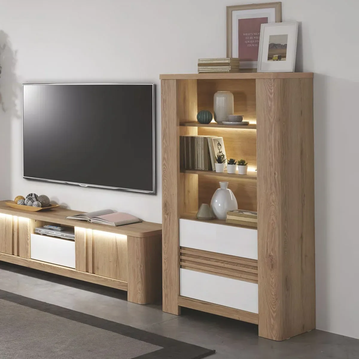 Nuova madia alta in finitura Rovere e Bianco laccato lucido in promozione