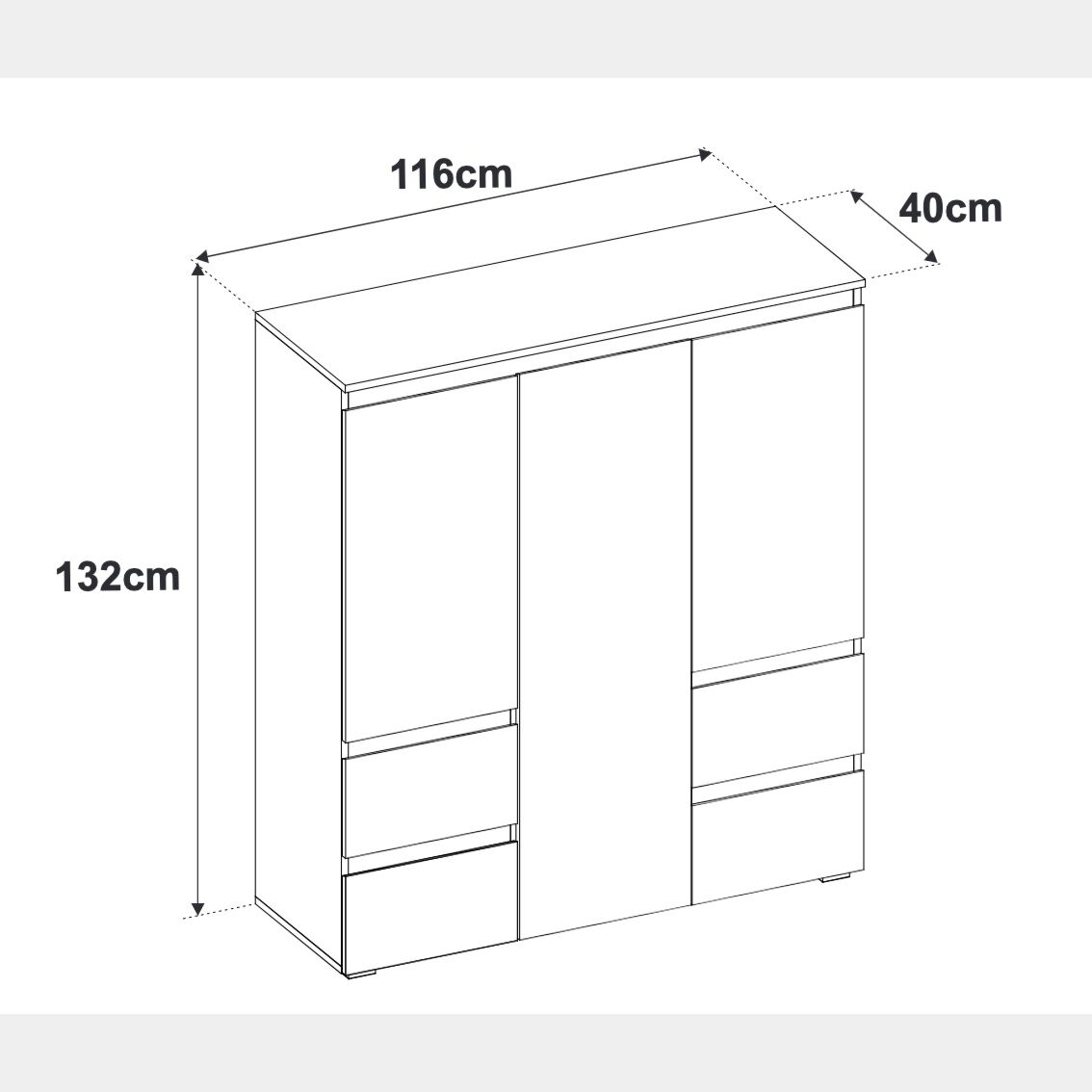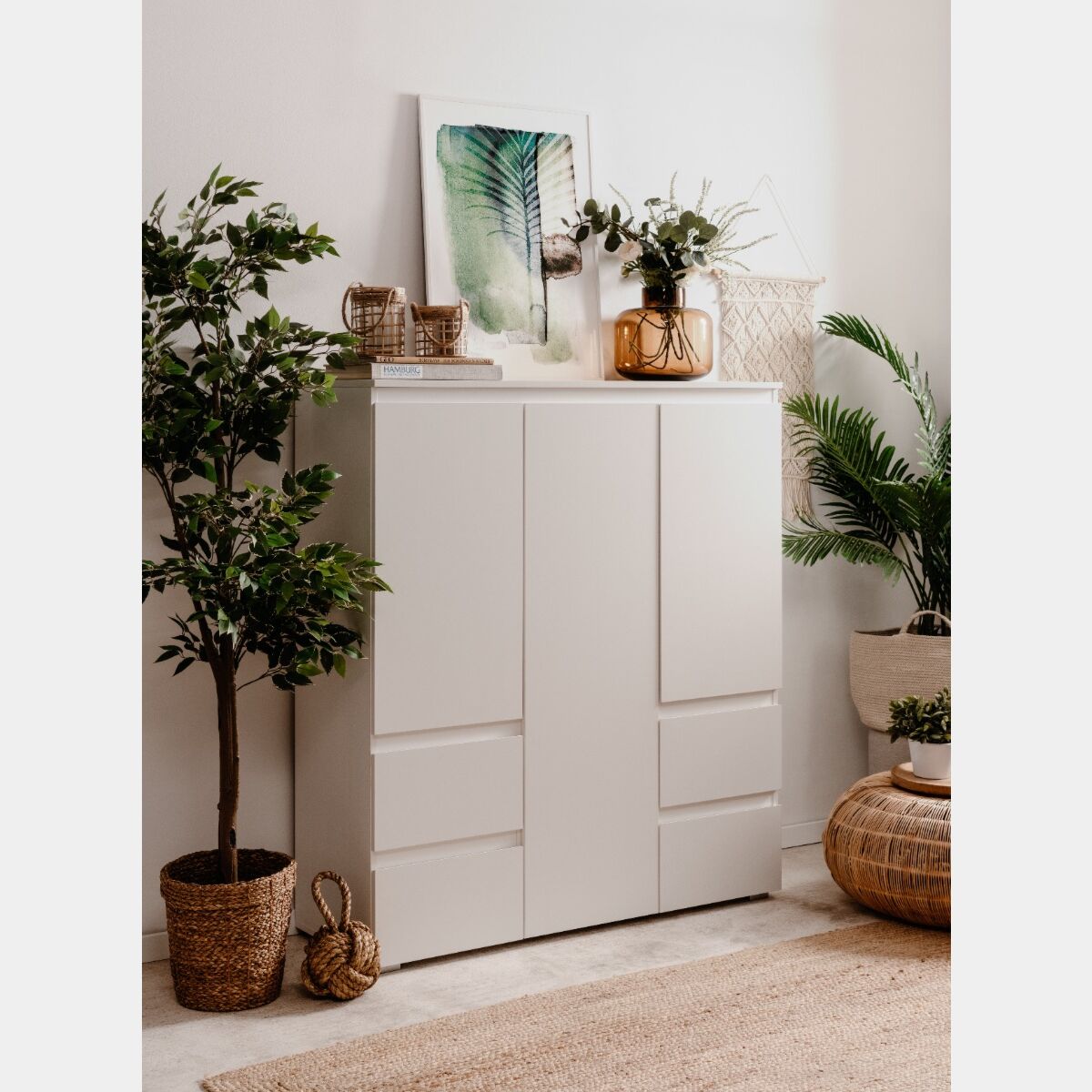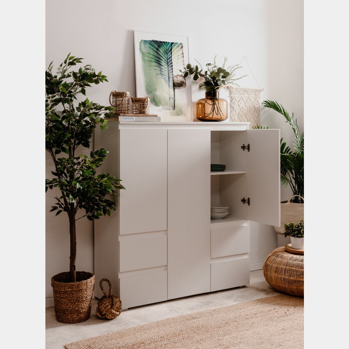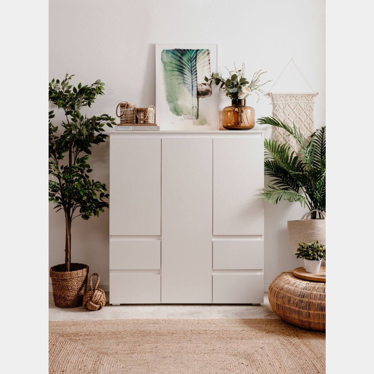 Madia alta composta da 3 ante e 4 cassetti, Bianca opaca