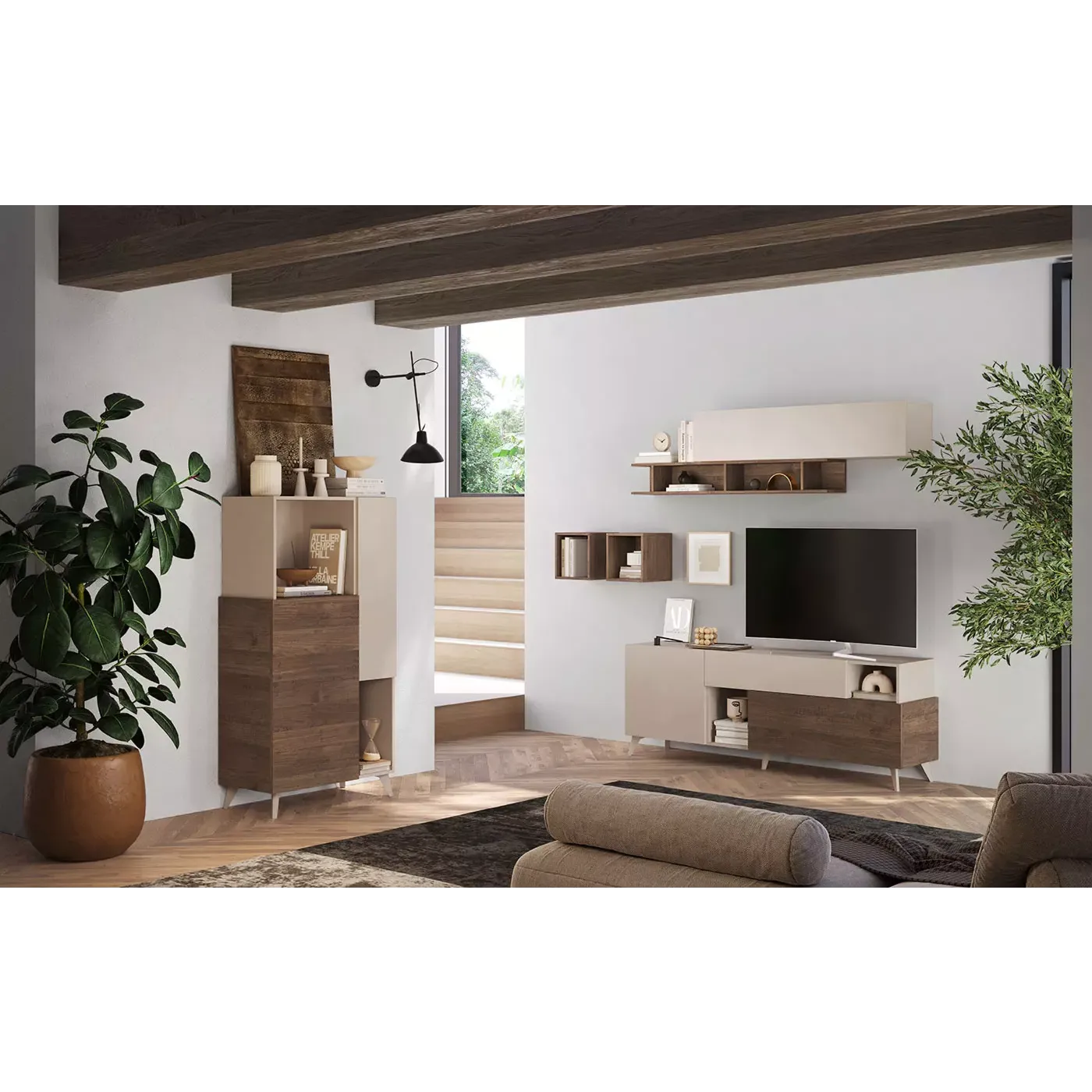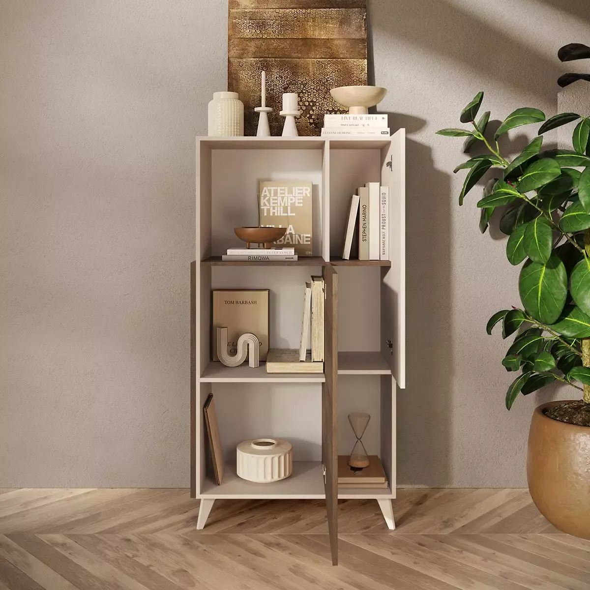 Madia alta con piedini, finitura Cashmere e Mercure