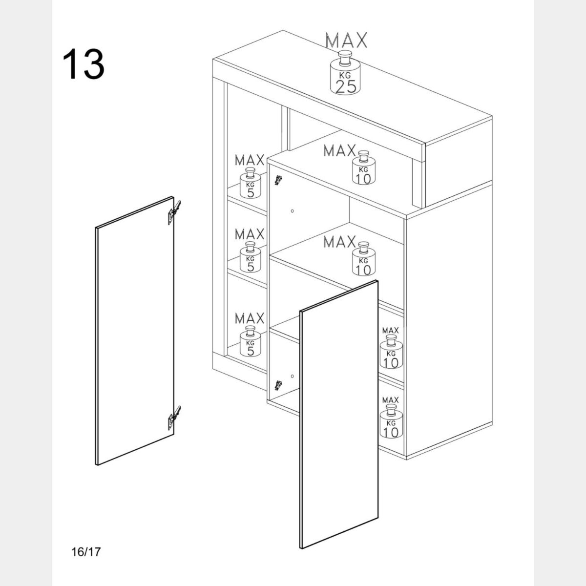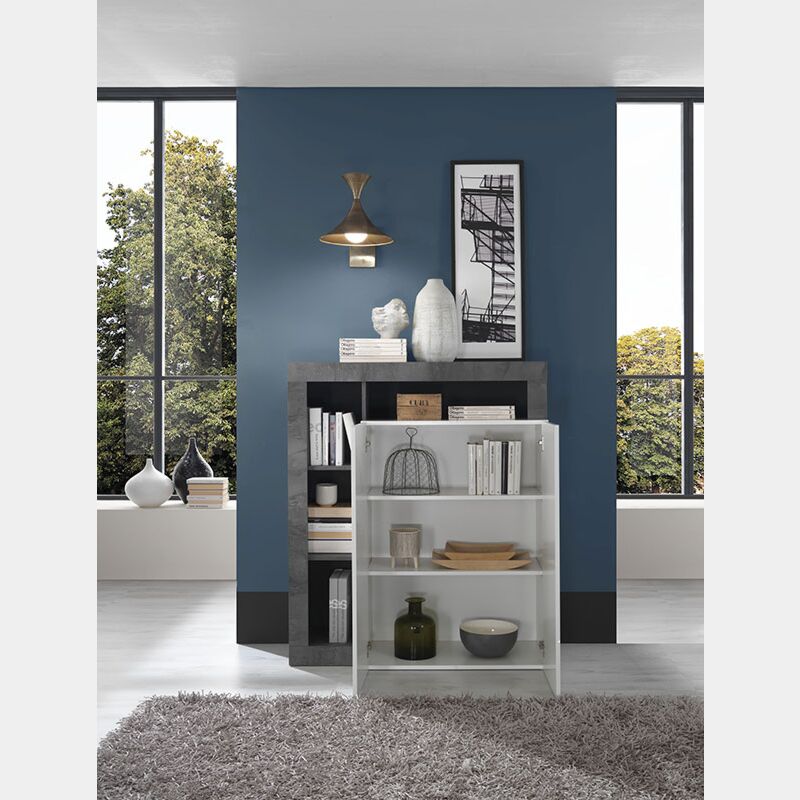 Madia alta di design con 2 ante in finitura bianco laccato lucido e ossido