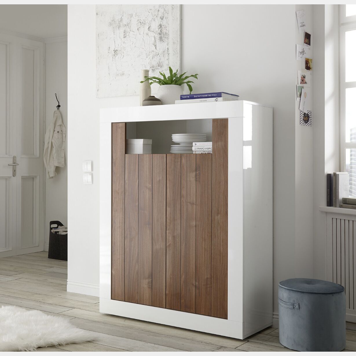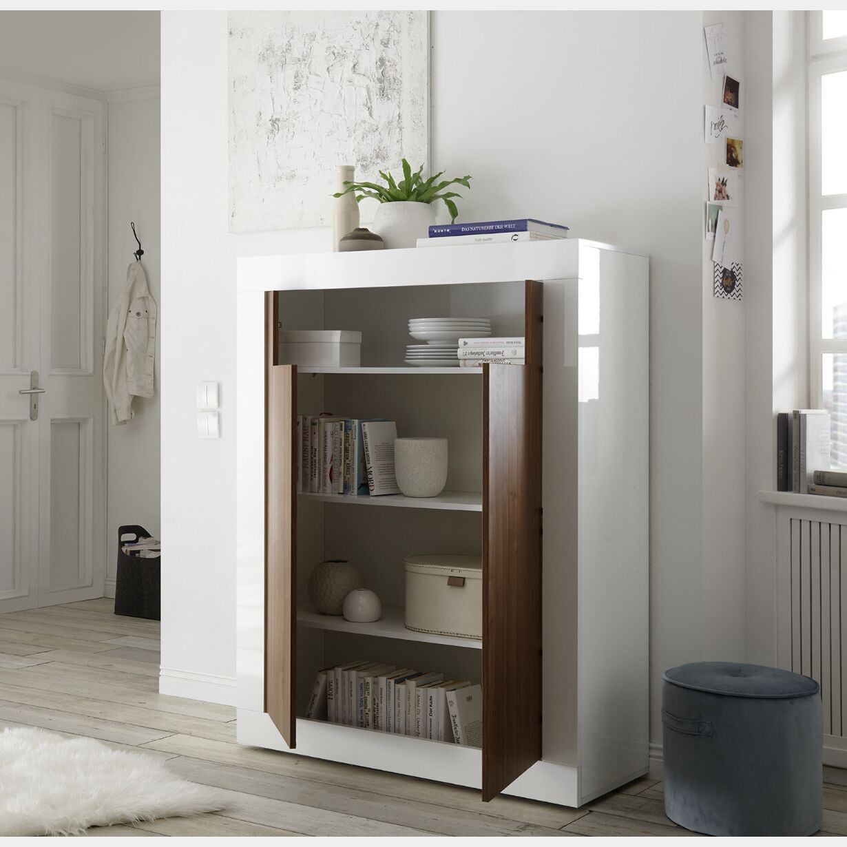 Madia alta moderna, 2 ante, Bianco Lucido e Noce Dark in spedizione gratuita.