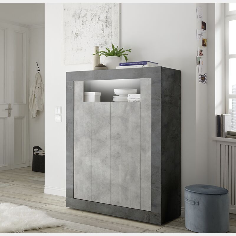Madia alta moderna, 2 ante, finitura ossido e cemento