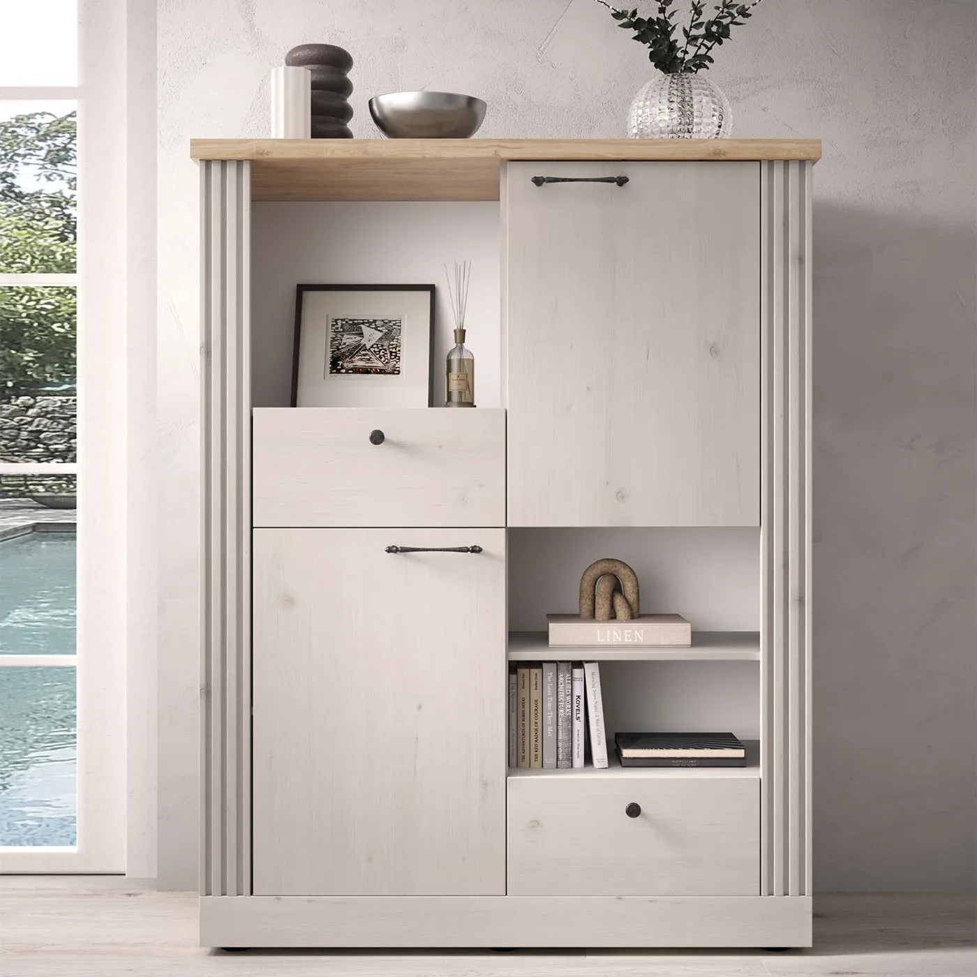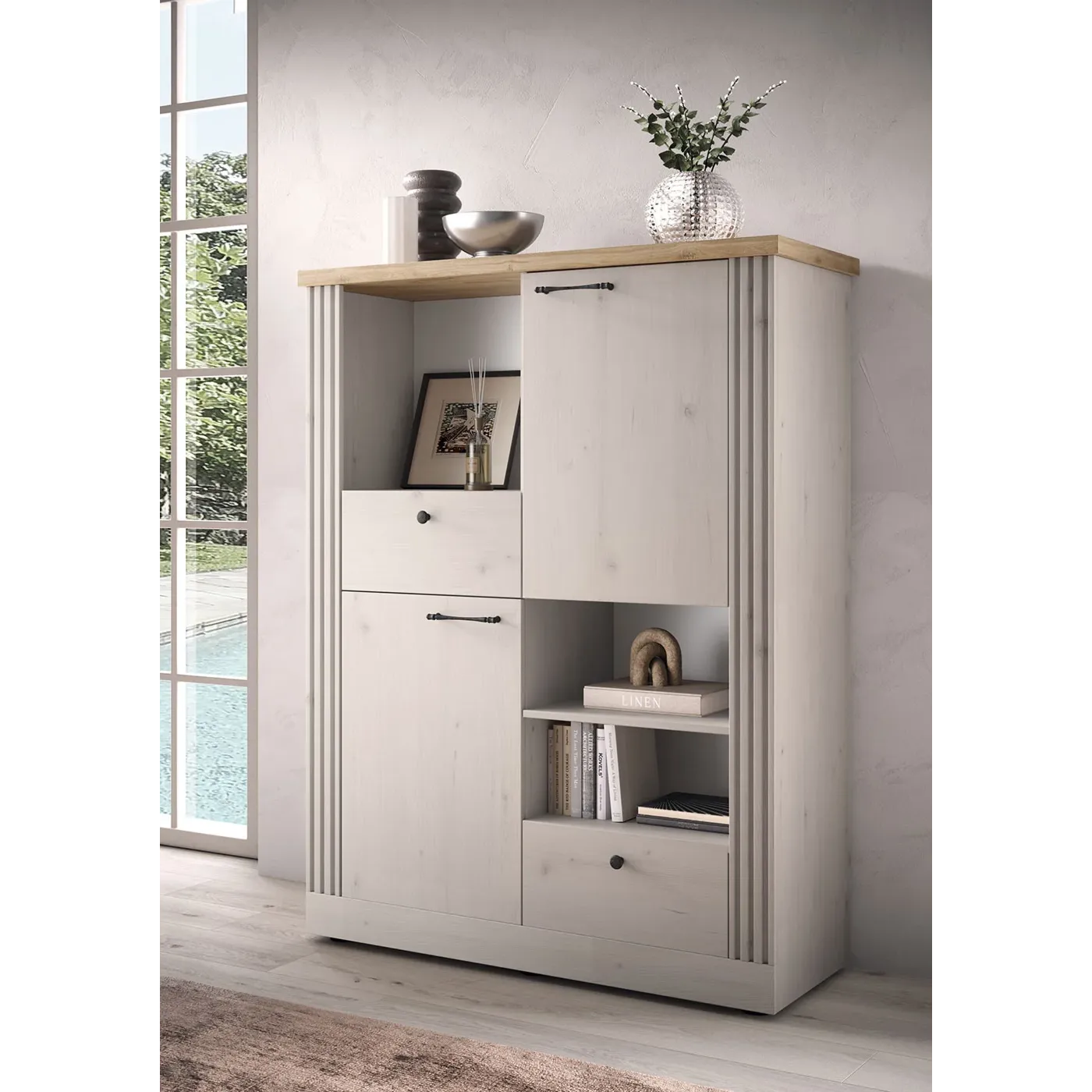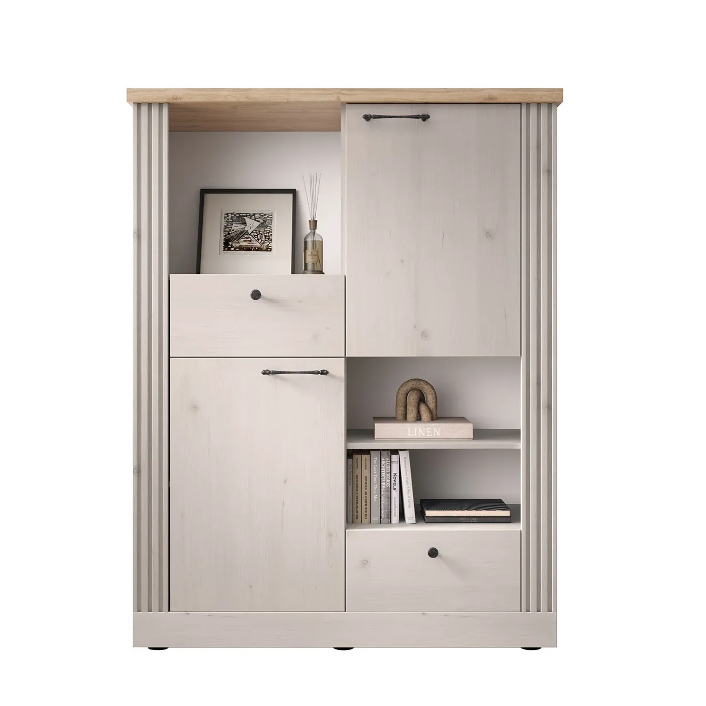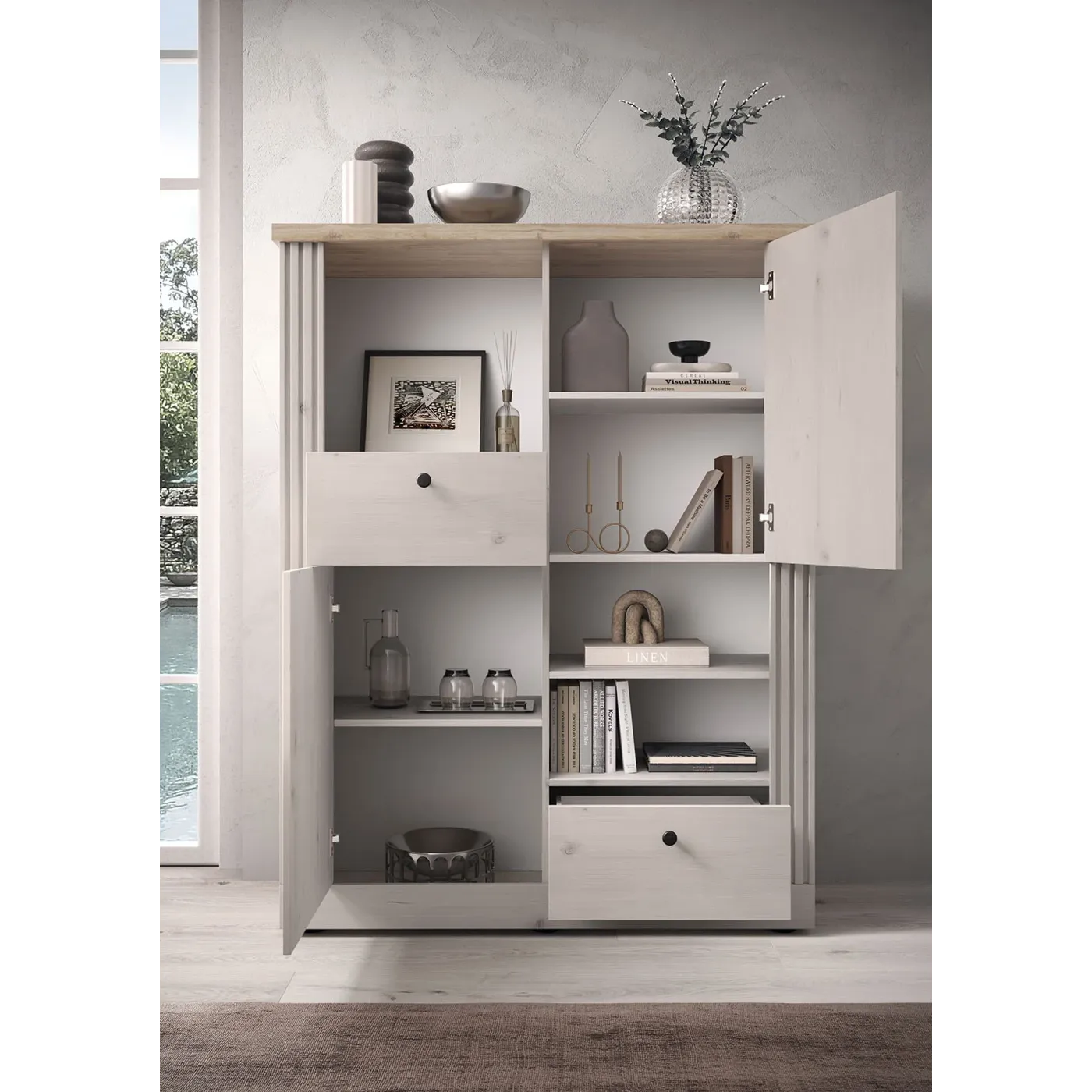 Madia alta Shabby, 118x160x44 h cm, Rovere meringa e Cadiz