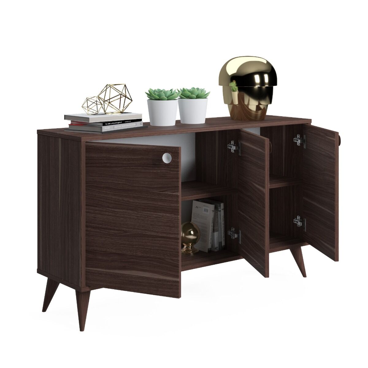 Dettagli accurati caratterizzano la credenza moderna Ankara. Particolari come moderni piedini a cono abbinati alle maniglie tonde con bordo in Noce assicurano un mobile ricercato e personale. La credenza moderna è in finitura Noce, è disponibile anche nella versione in Bianco oppure Rovere.