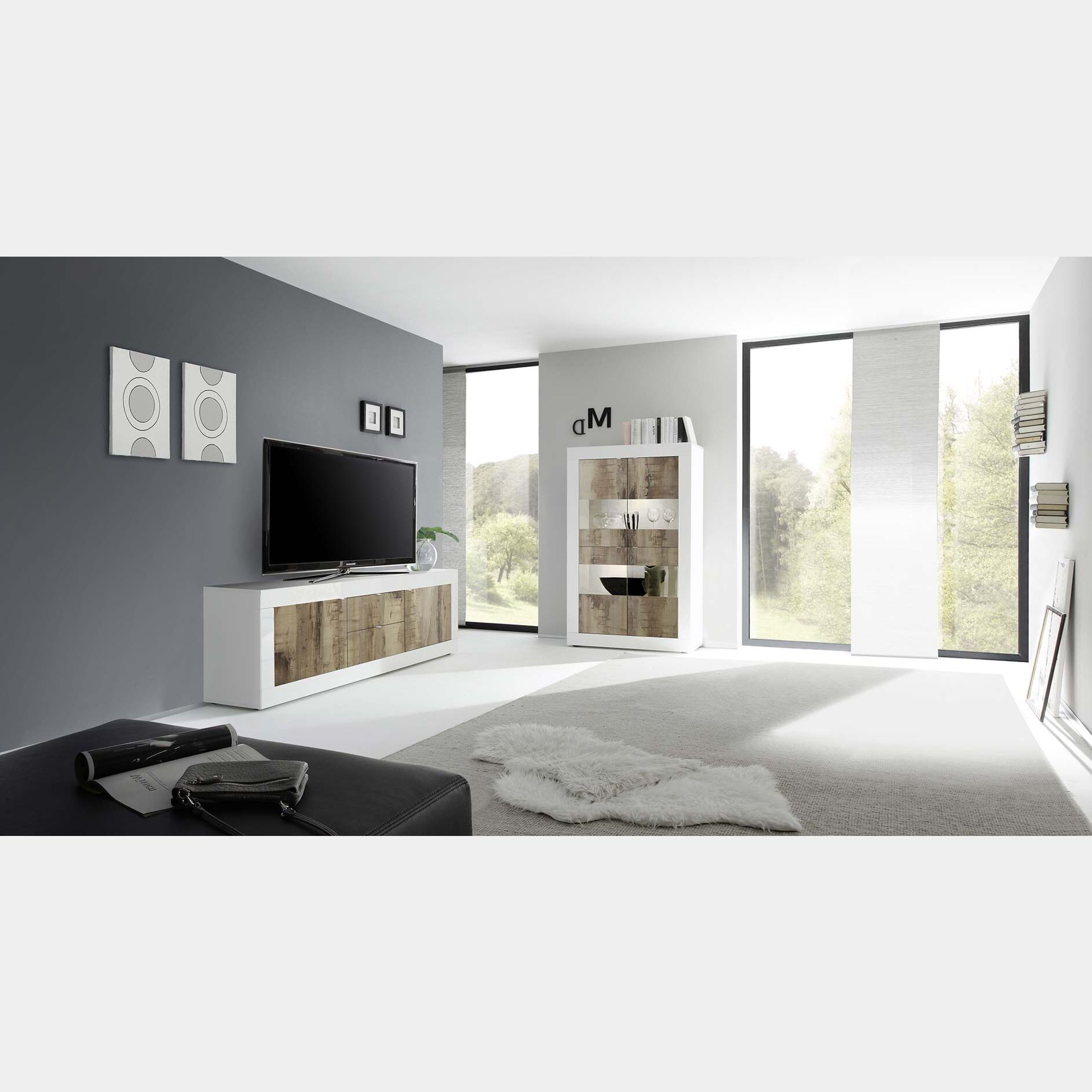 Questa madia moderna si contraddistingue per la finitura in pero delle ante, grazie al suo design pulito si adatta a tutti gli ambienti rendendo il proprio living di tendenza.