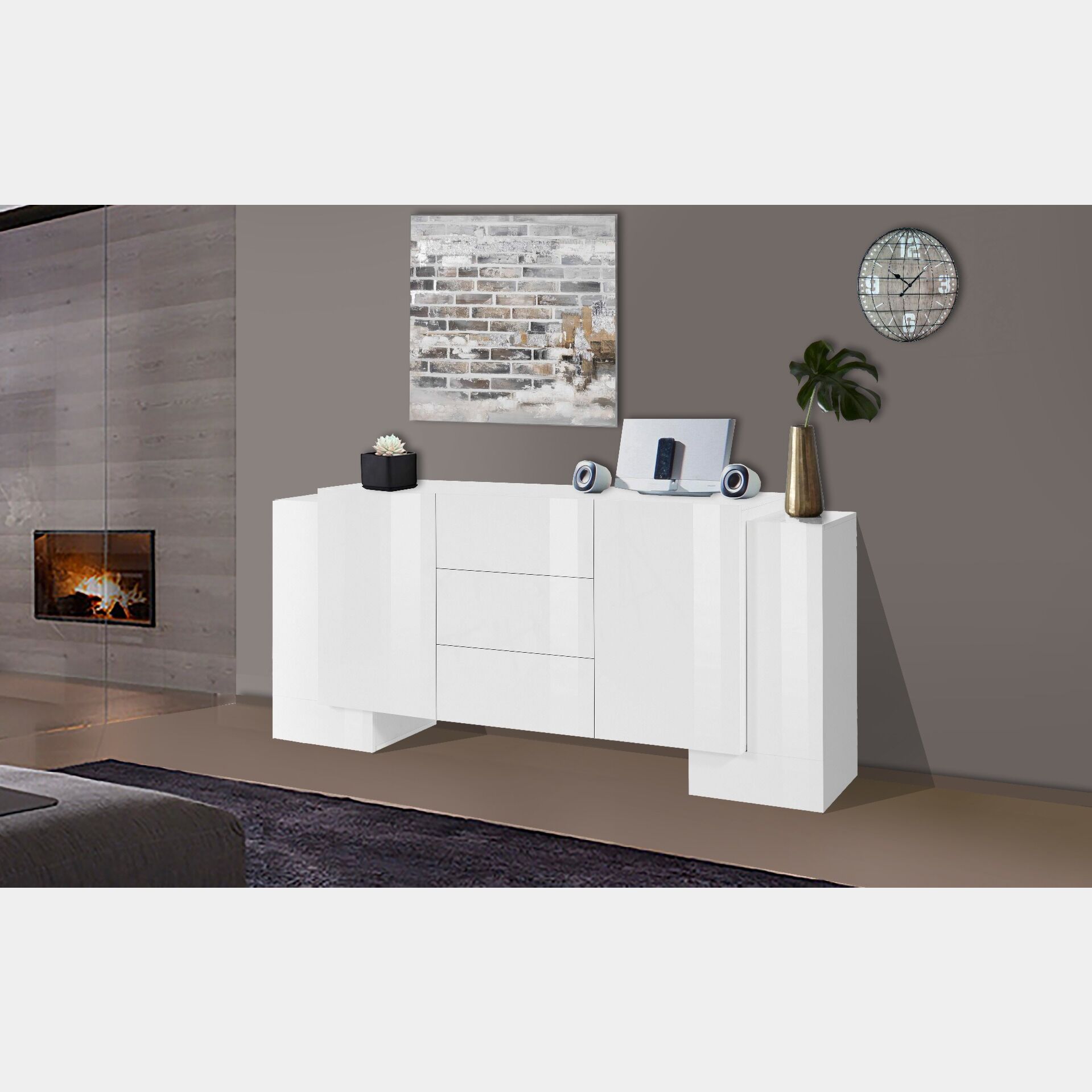 Madia Bianca laccata lucido , 3 cassetti e 4 ante