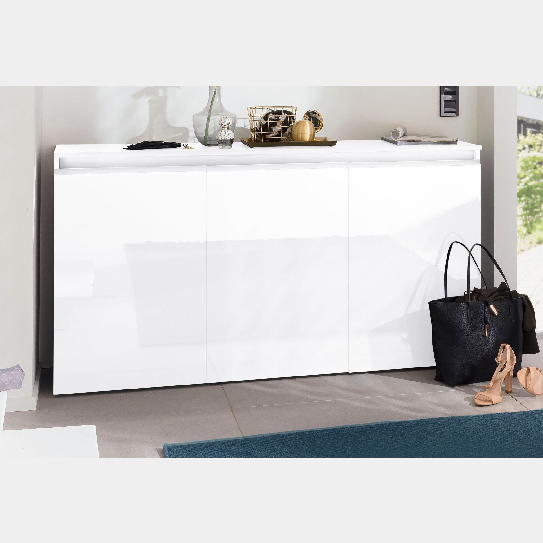 Madia bianca laccato lucido 3 ante, maniglie a gola
