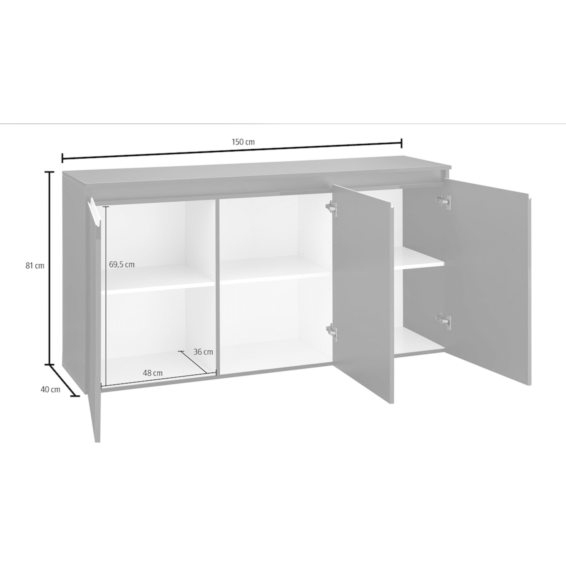 La madia presenta un design semplice e pulito, la finitura in bianco laccato lucido illumina l'ambiente rendendolo accogliente ed elegante. Le sue dimensioni consentono alla madia di adattarsi a diversi ambienti della casa, come ad esempio alla cucina, al corridoio oppure al soggiorno.