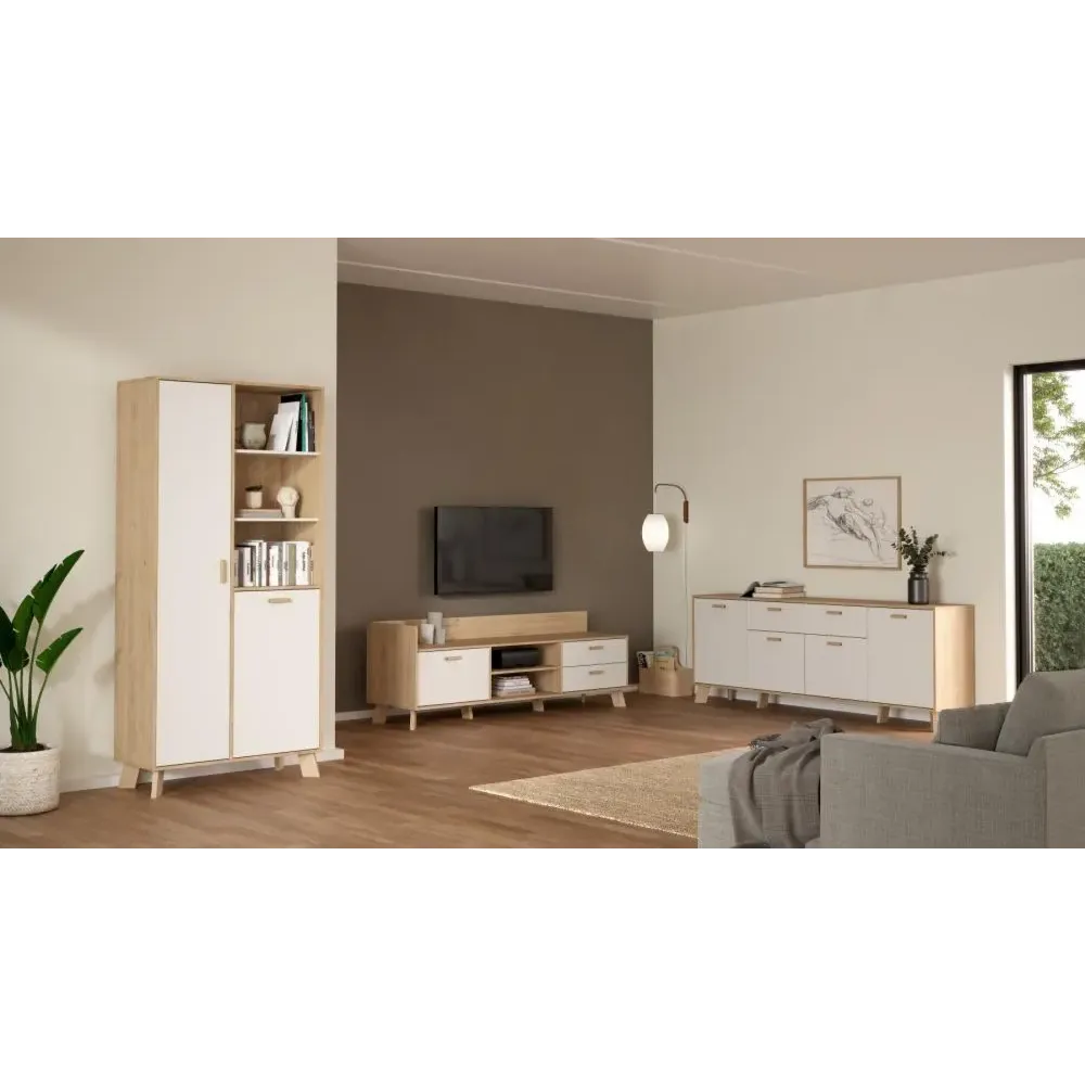 Madia capiente in finitura Rovere e Bianco moderna