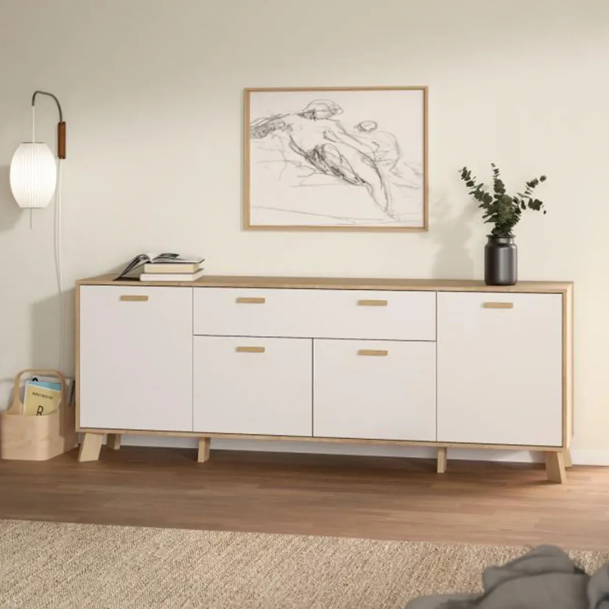 Madia capiente in finitura Rovere e Bianco moderna. Della stessa finitura trovate le madie, librerie e molto altro!