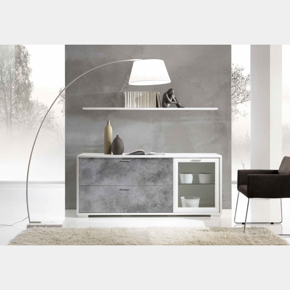 Madia classica Bianco frassinato e spatolato grafite con anta in vetro, anta ribalta e cassettone inferiore