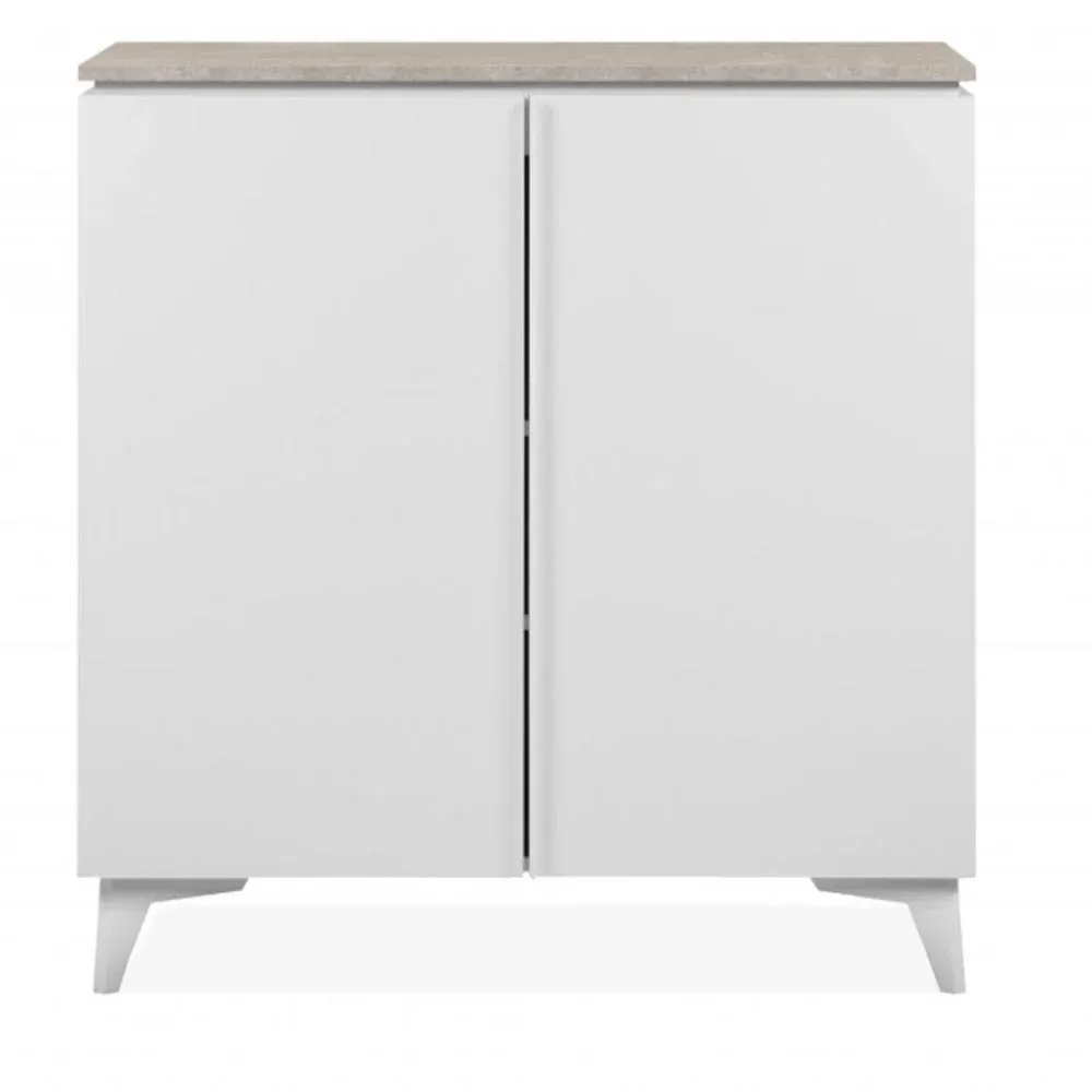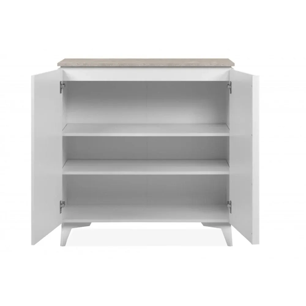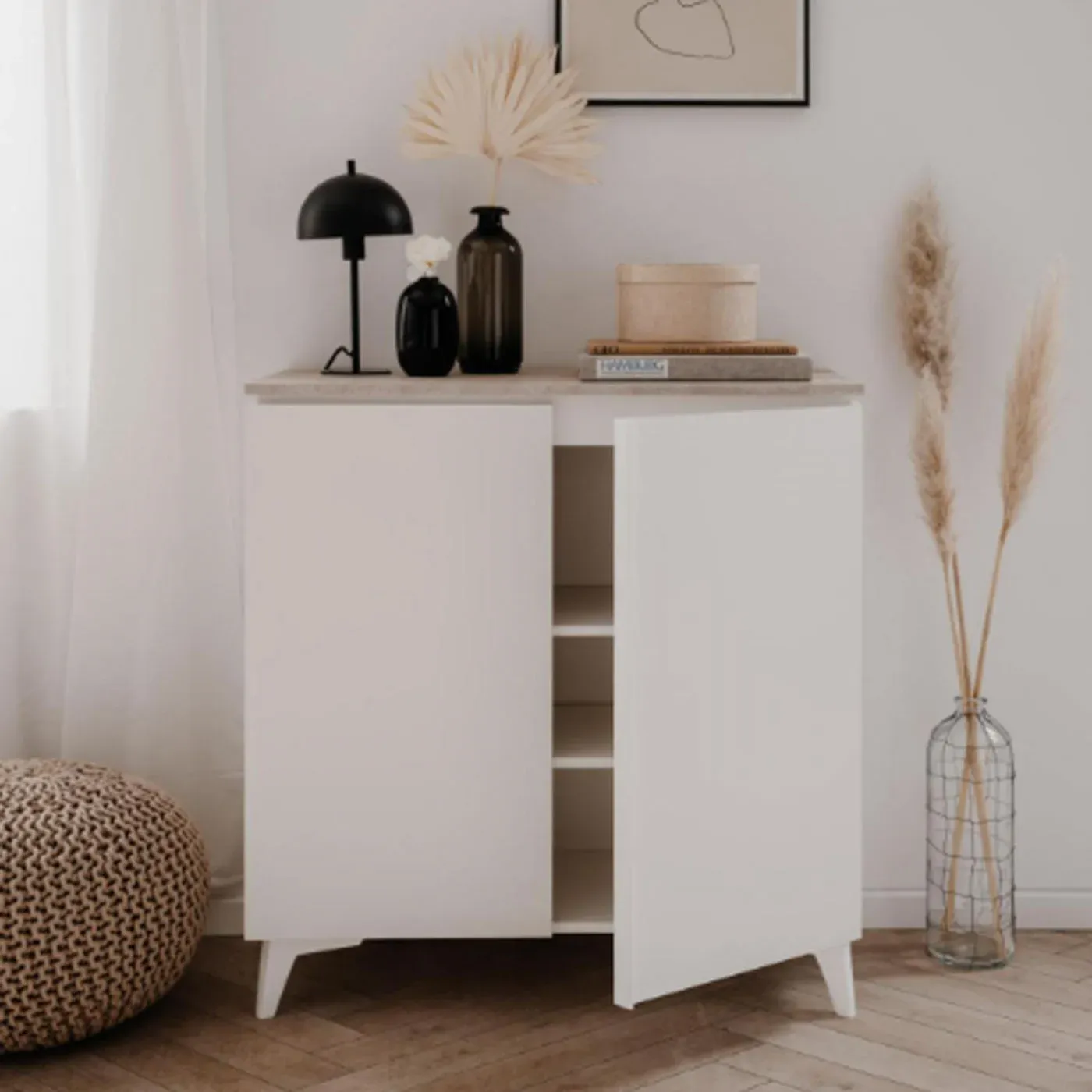 Bellissima madia in finitura Bianco e Calcestruzzo caratterizzata da tre ripiani e da due ante. Si rivela spaziosa per inserire i vostri oggetti in ordine. Grazie al suo design nordico e innovativosi adatta facilmente alla vostra sala da pranzo, il vostro soggiorno o la vostra zona living.