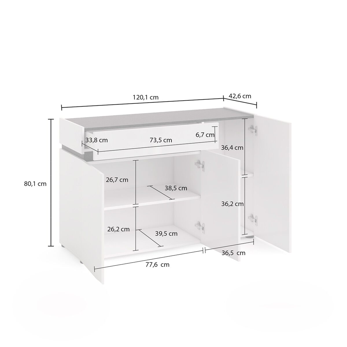 • Totali: L.120,1 H.80,1 P.42,6 cm
