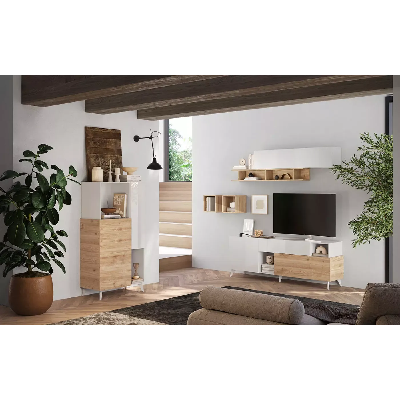 Madia con piedini alta, finitura Bianco lucido e Cadiz