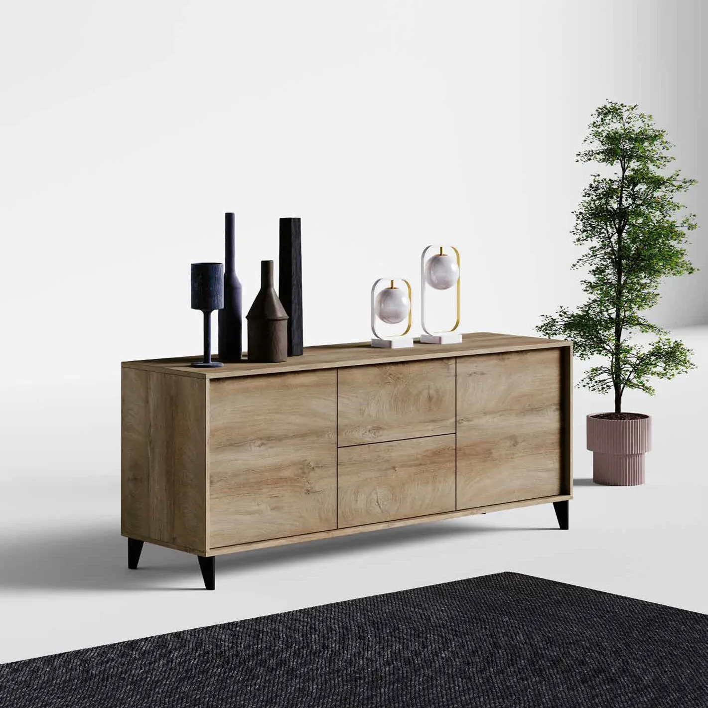 Madia con piedini Quercia, 2 ante e 2 cassetti