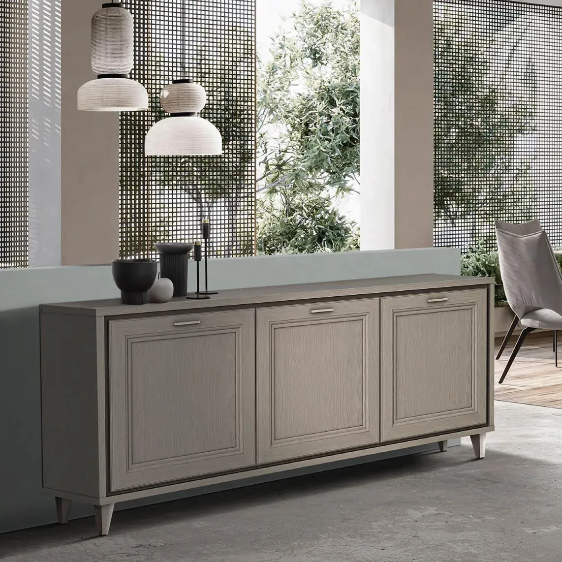 Questa madia con 3 ante è caratterizzata da una grande capacità contenitiva e notevole versatilità; si adatta perfettamente a soggiorni, cucine, ingressi o corridoio assicurando all'ambiente uno stile elegante e ricercato.
