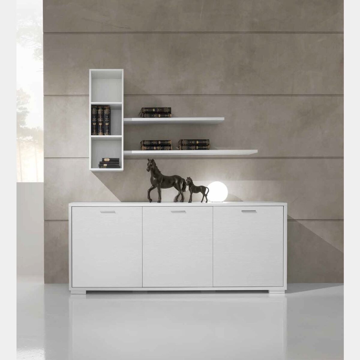Credenza contenitore 3 ante dallo stile classico, finitura Bianco frassinato, 100% Made in Italy. E' un mobile dal design contemporaneo, molto capiente che rispecchierà appieno tutte le vostre esigenze di spazio donando luminosità e unicità all'ambiente.