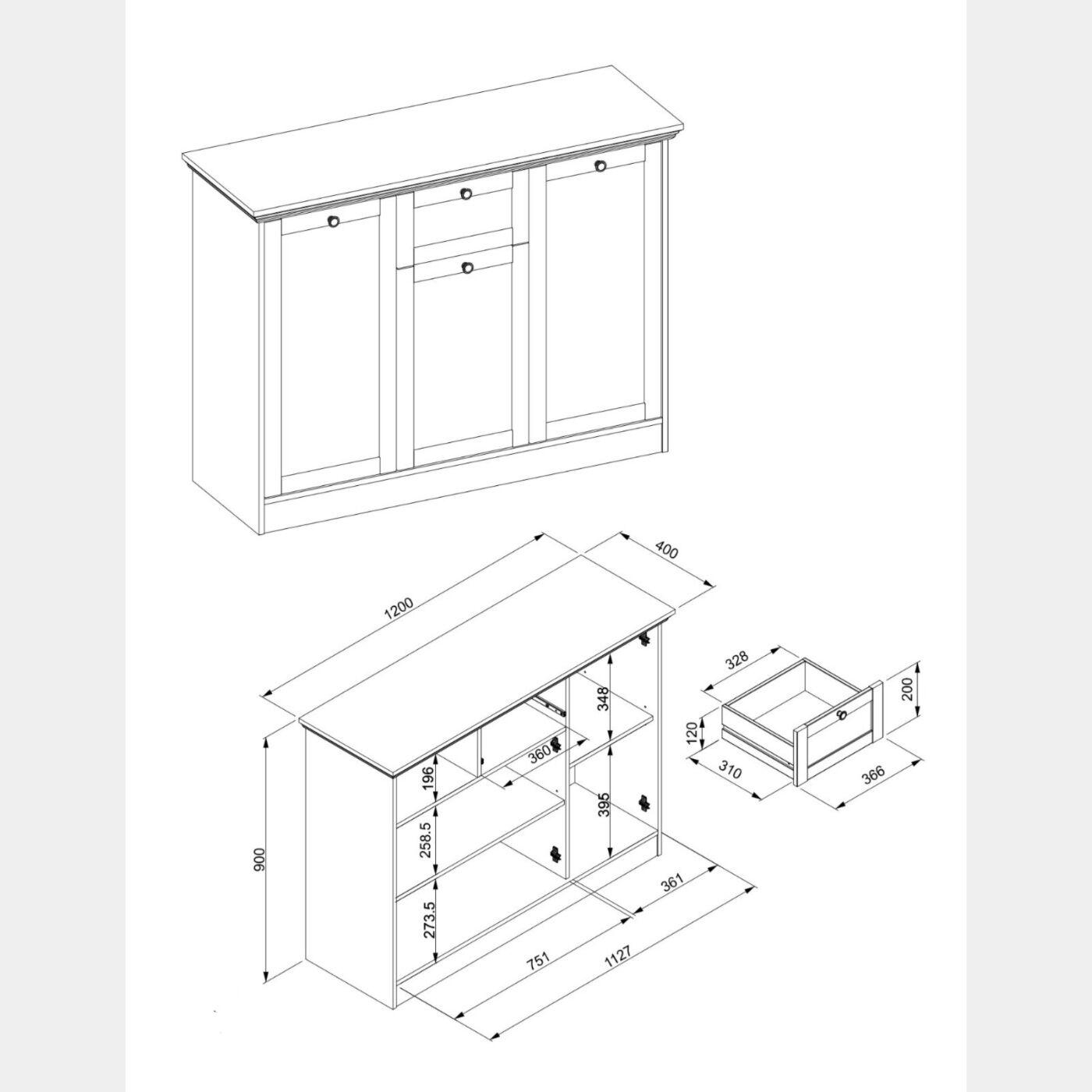 Il suo colore rende questa madia estremamente di tendenza con un design pulito ma accattivante. La sua semplicità conquista tutti. La madia per la zona giorno ha profili in MDF e bordi in ABS ed è interamente in melaminico con maniglie e ferramente in metallo.