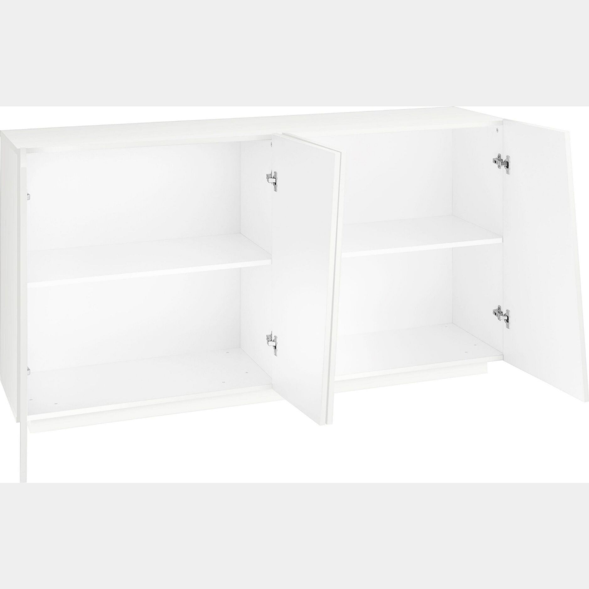 Madia credenza 4 ante in finitura bianco lucido, la caratteristica che contraddistingue questa madia credenza sono le ante assimetriche. Questo è un particolare che rende questa madia estremamente di tendenza, con un design pulito ma accattivante.