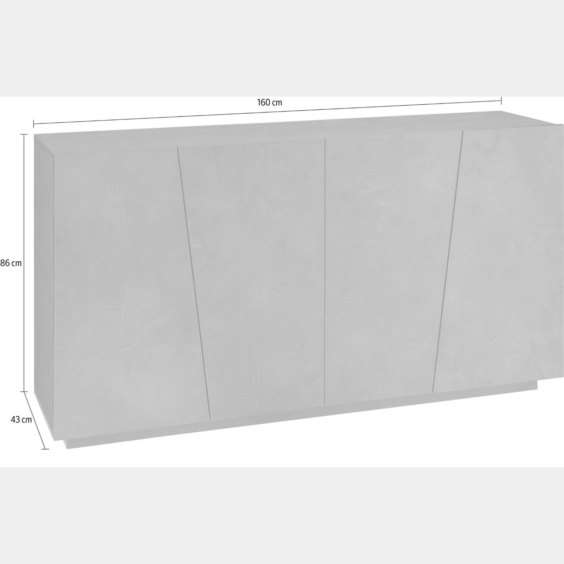 La madia è molto capiente, all'interno di ogni anta c'è una mensola che divide lo spazio a metà. E' disponibile in finitura bianco lucido oppure ardesia. A completare la collezione sono presenti anche la madia a 2 ante e 3 cassetti, la madia più grande a 4 ante e 3 cassetti, la madia alta, e 2 porta tv di diverse dimensioni.