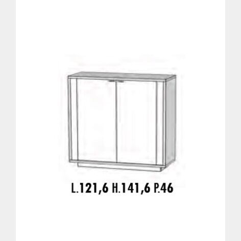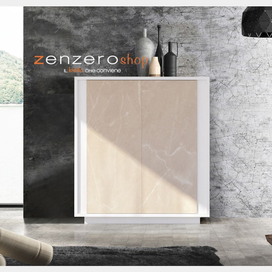 Madia di Design Alta, Credenza Moderna 2 ante, Bianco Nobilitato e Opera