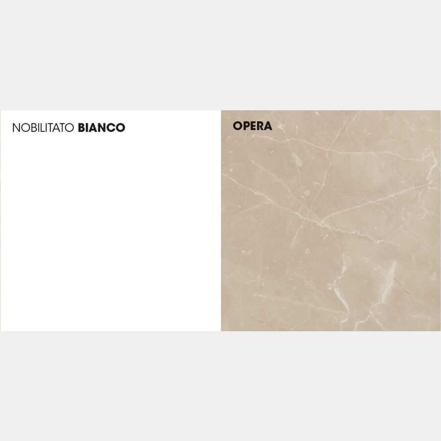 Le 2 ante battenti con pannello nobilitato antigrafio, sp 19 mm. sono “classe E1” con bordi arrotondati in ABS sp. 1,5 mm. Ferramenta e istruzioni di montaggio sono inserite nei pacchi forniti. Le cerniere e basette sono in acciaio con doppia regolazione in altezza e profondità. L'apertura delle ante avviene con meccanismo push-pull in pvc satinato. All'interno di ogni anta si trova un ripiano.