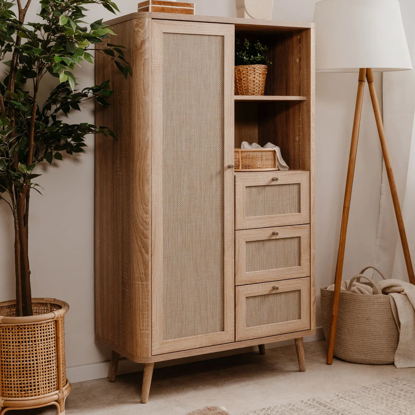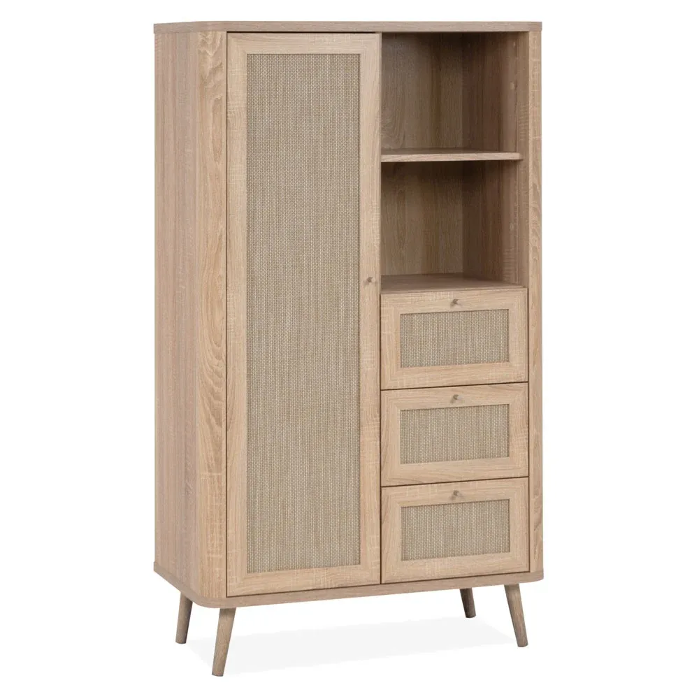 La credenza con il suo design unico e nordico si può collocare in più ambienti come in una zona living, in una cucina o in una sala da pranzo. Una caratteristica che rappresenta al meglio il mobile è la sua capienza si dimostra sin da subito disponibile ad ospitare numerosi oggetti. La finitura del mobile Rovere oak effetto rafia offre un tocco di calore e di eleganza all'intera stanza che merita di essere valorizzato in un luogo luminoso e spazioso. Se volete una madia di buona qualità e allo stesso tempo che sia funzionale questa rispecchia entrambe le due richieste.