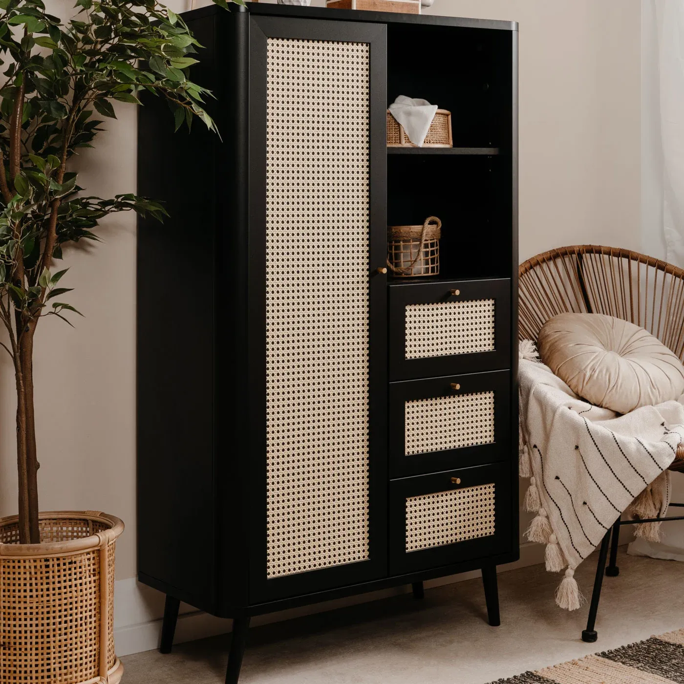 Volete una madia che sia pratica e che attiri l'attenzione per la sua bellezza nel vostro soggiorno? Ti proponiamo questo nuovo arrivo colore Nero e Rovere somoa con la particolarità dell'effetto rafia. Se volete un mobile chic, di classe e dallo stile nordico questo fa al caso tuo!