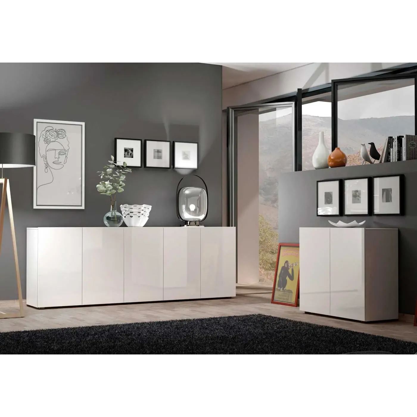 Madia elegante a 2 ante Bianco lucido, Made in Italy