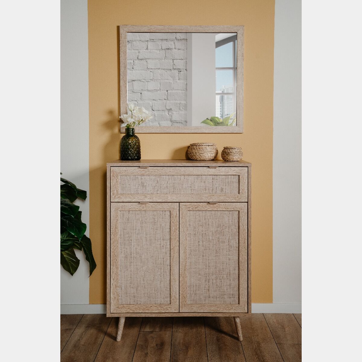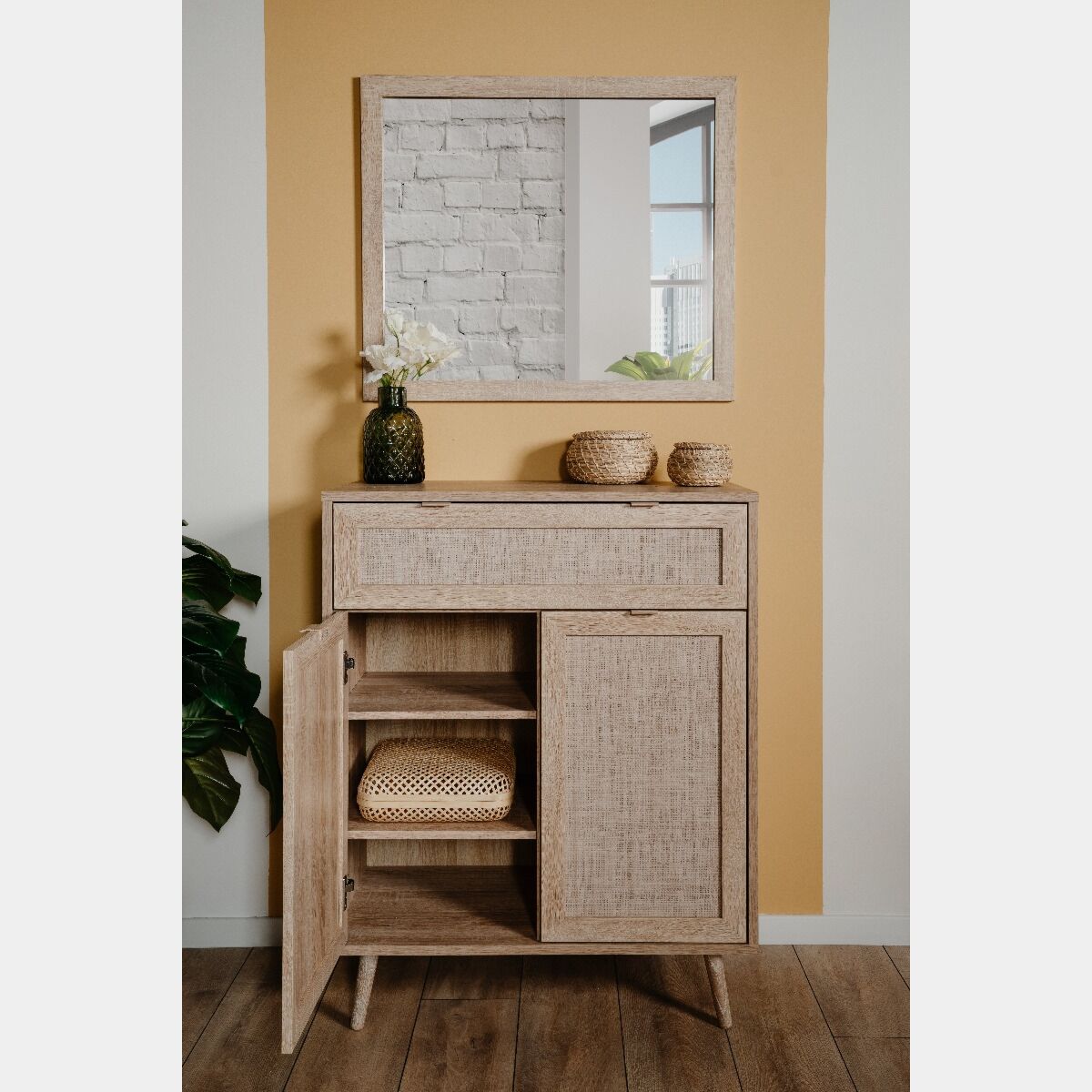Madia Kara con 2 ante ed un cassetto in finitura Quercia e Rafia