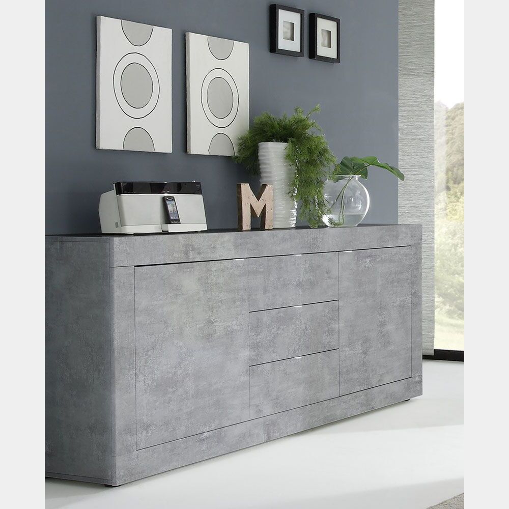 Madia mobili finitura cemento, modello 2 ante 3 cassetti