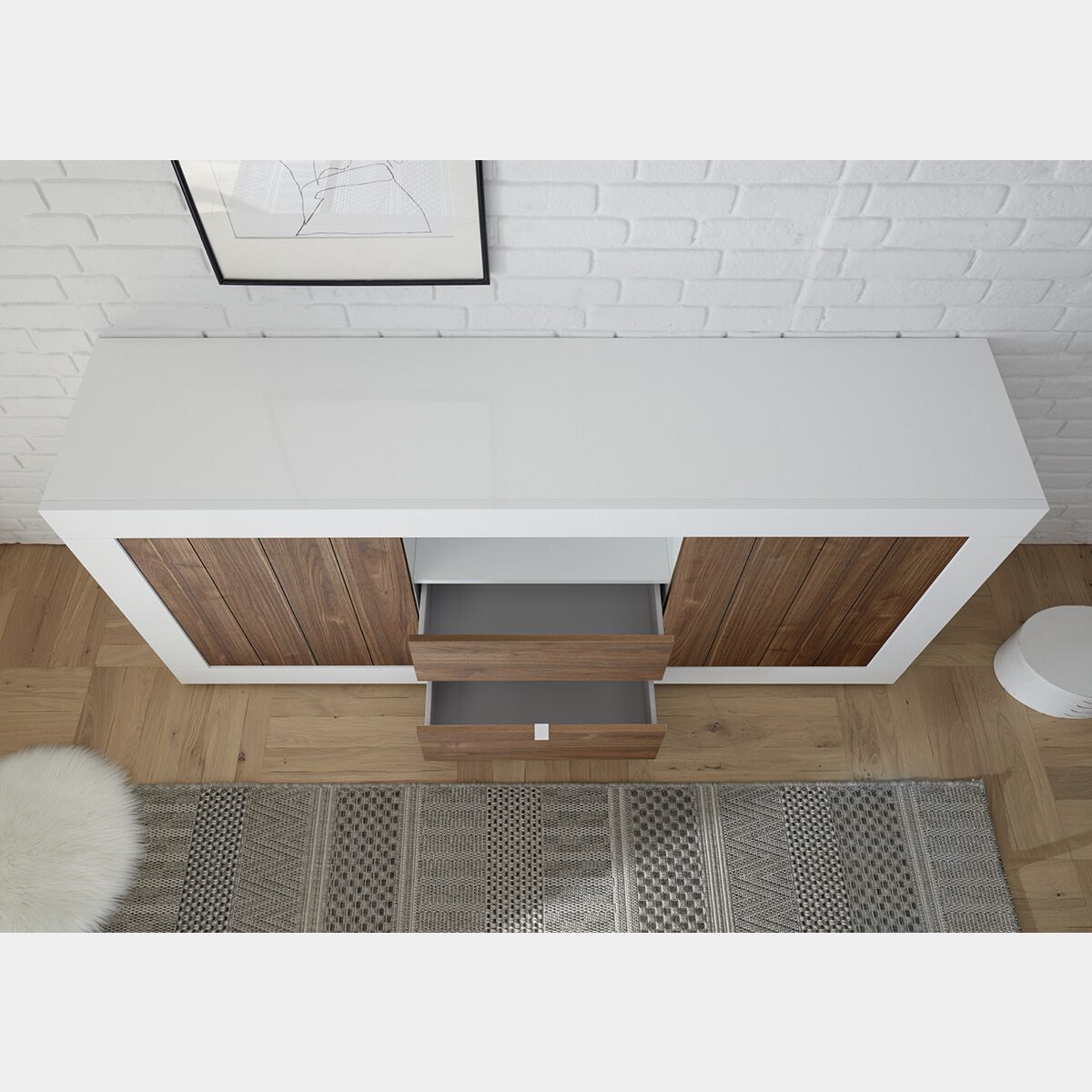 Madia moderna, 2 ante 2 cassetti in finitura Noce Dark e Bianco Lucido