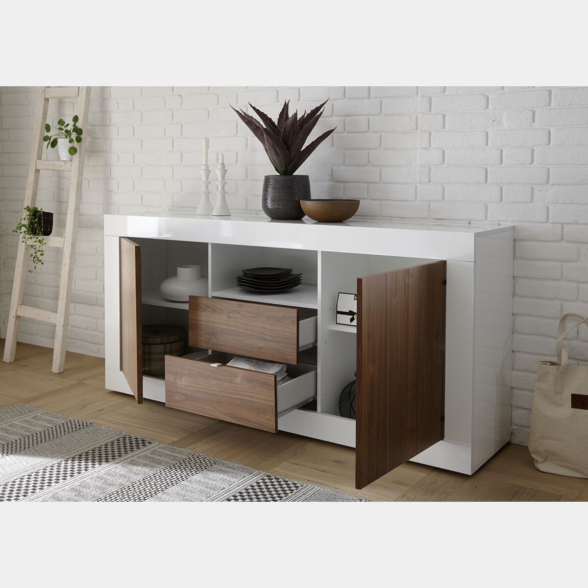 Madia moderna, 2 ante 2 cassetti in finitura Noce Dark e Bianco Laccato LucidoLa madia moderna unisce l'eleganza del design italiano e il fascino moderno offrendo così un risultato estremamente chic e rendendo la vostra zona living di tendenza.